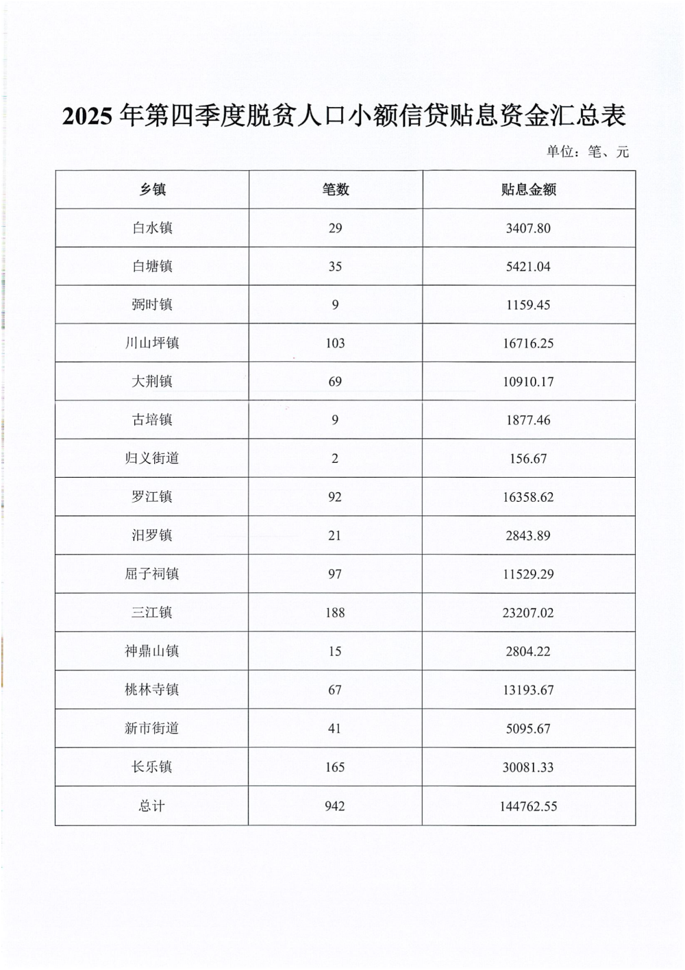 汨农组办发〔2026〕3号 关于发放扶贫小额信贷贴息(第四季度)资金的通知