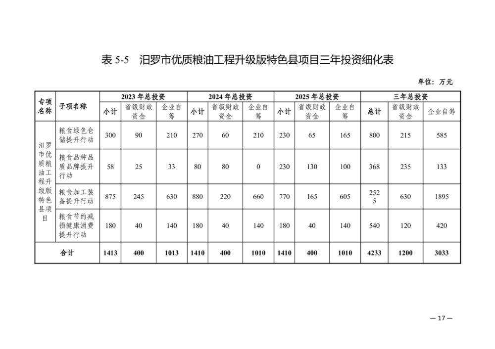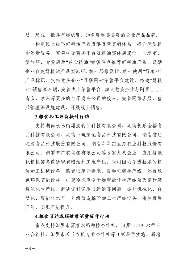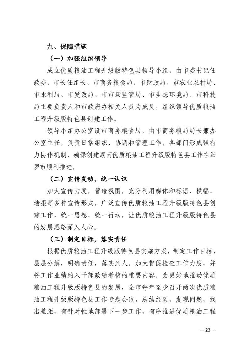 汨罗市2023-2025年优质粮油工程升级版特色县实施方案
