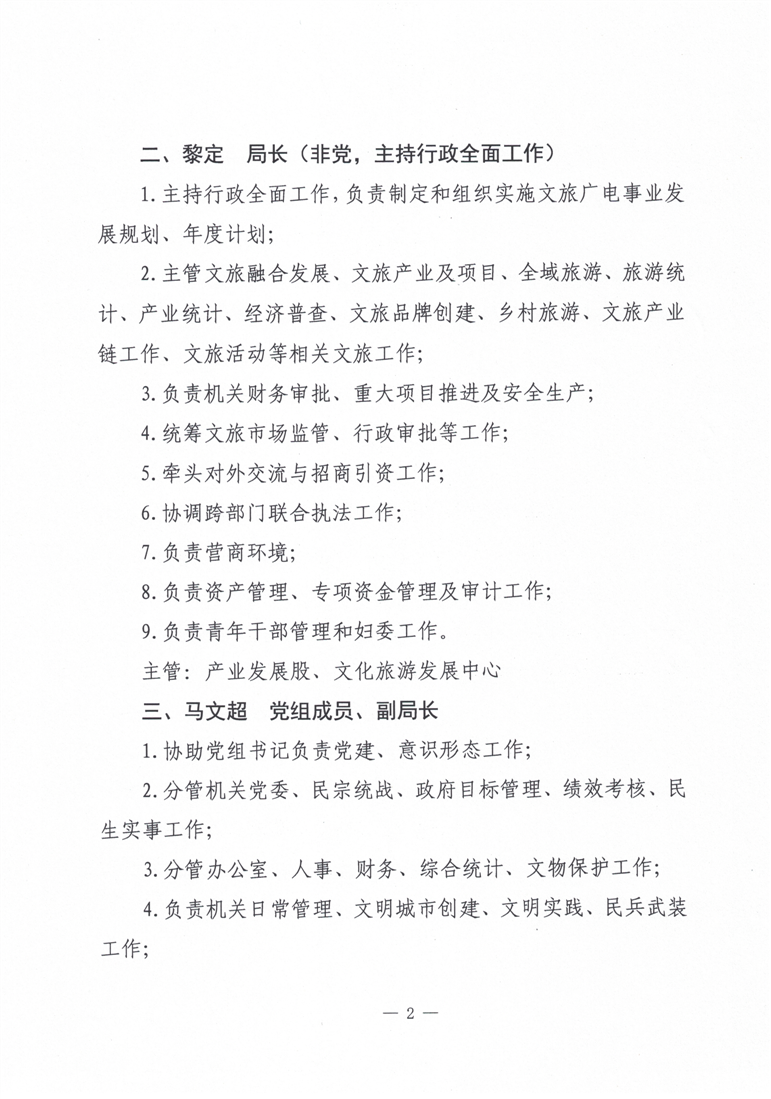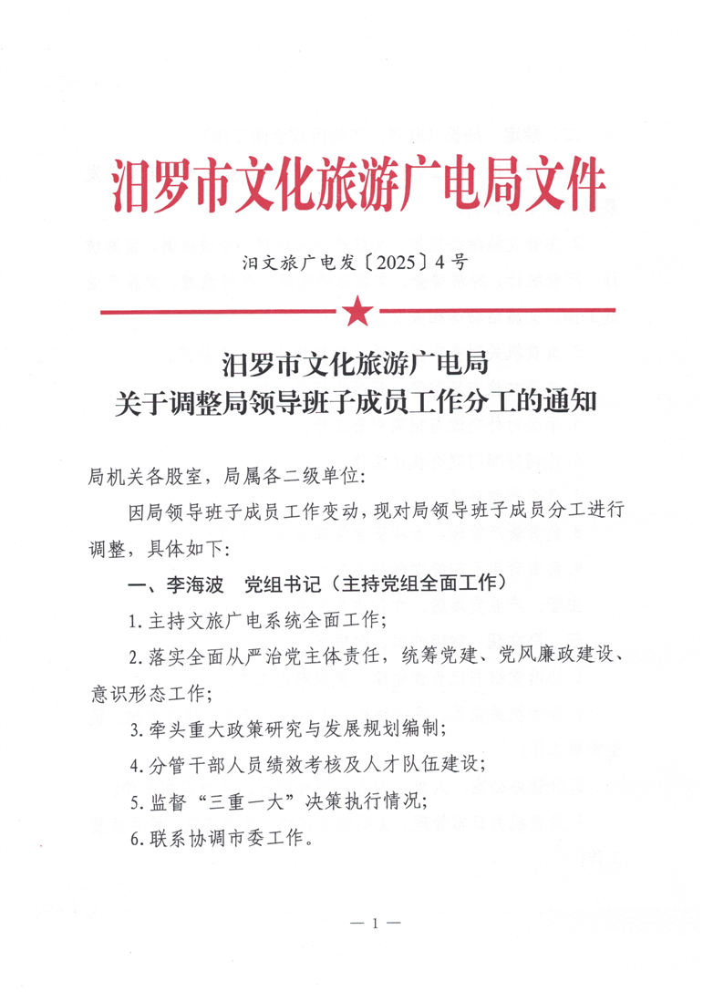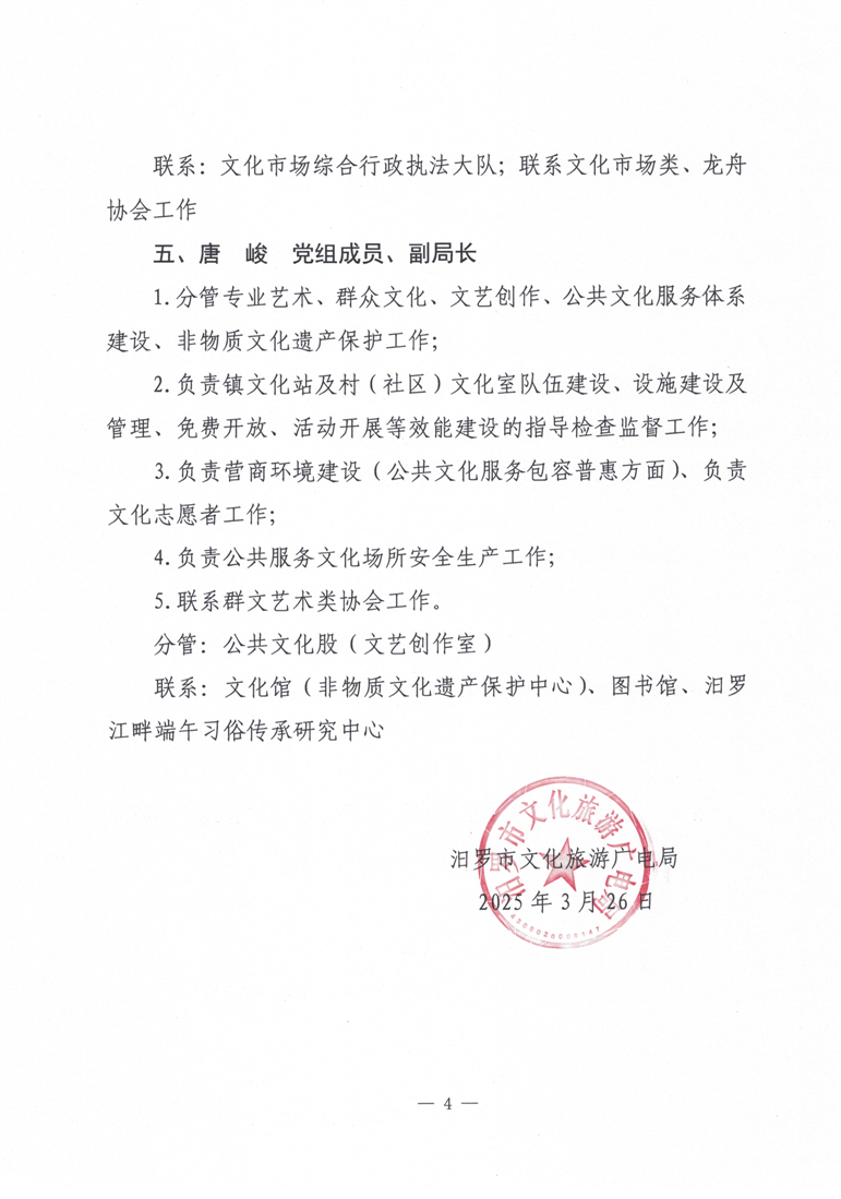 汨罗市文化旅游广电局2025年党组班子成员分工
