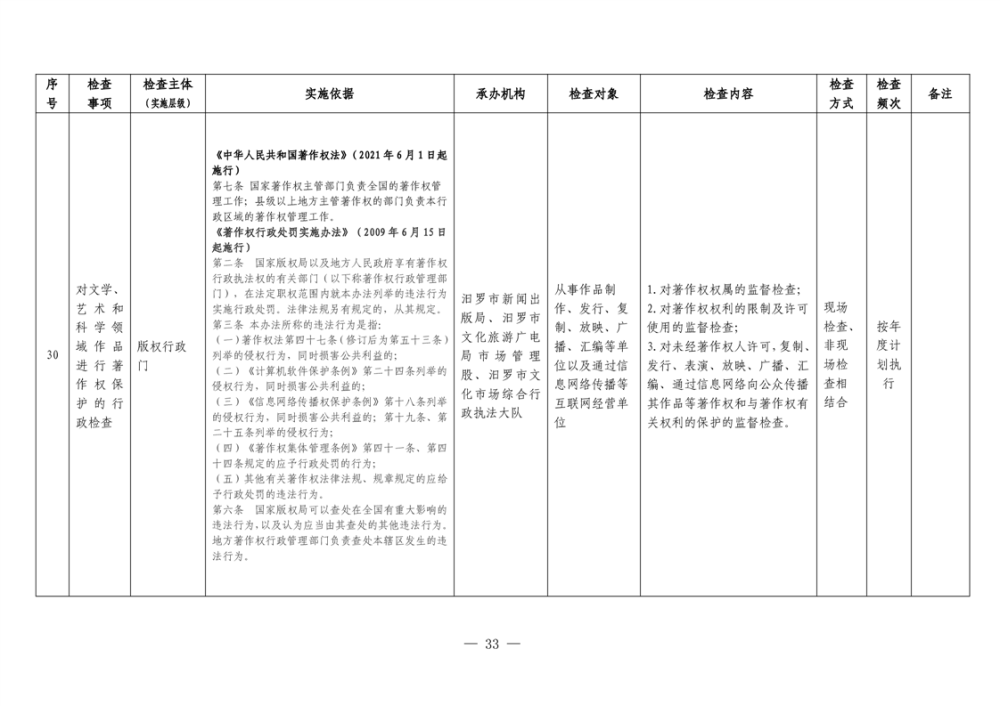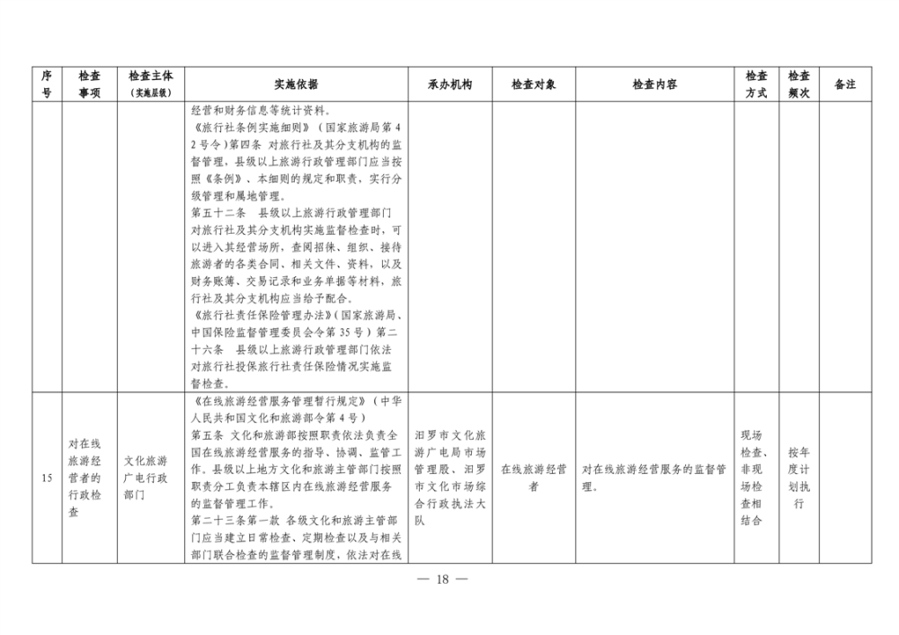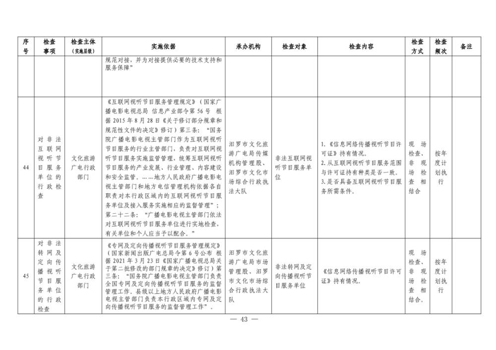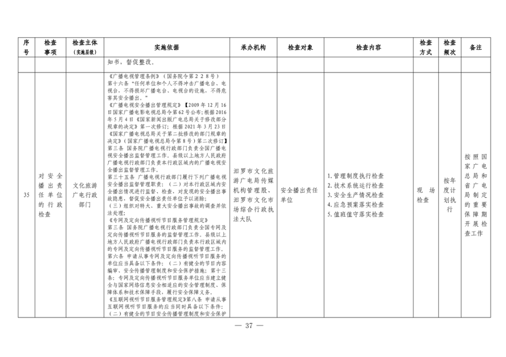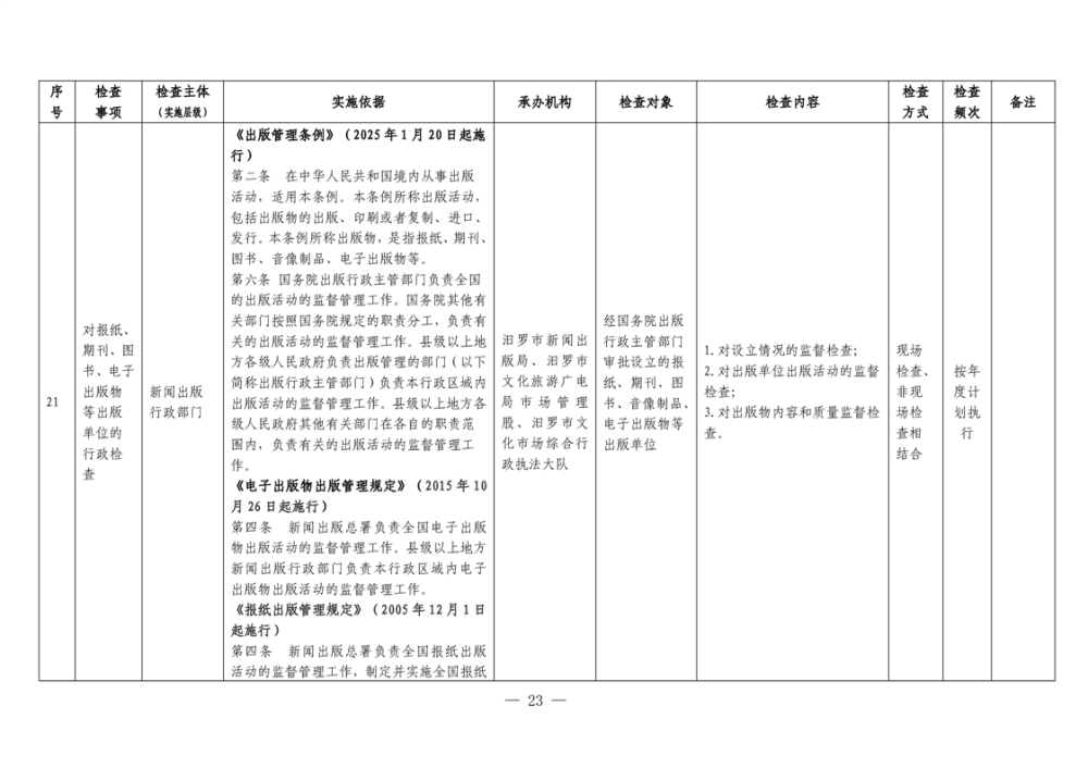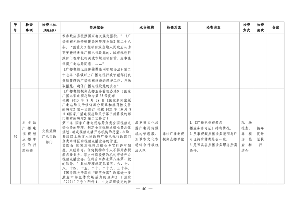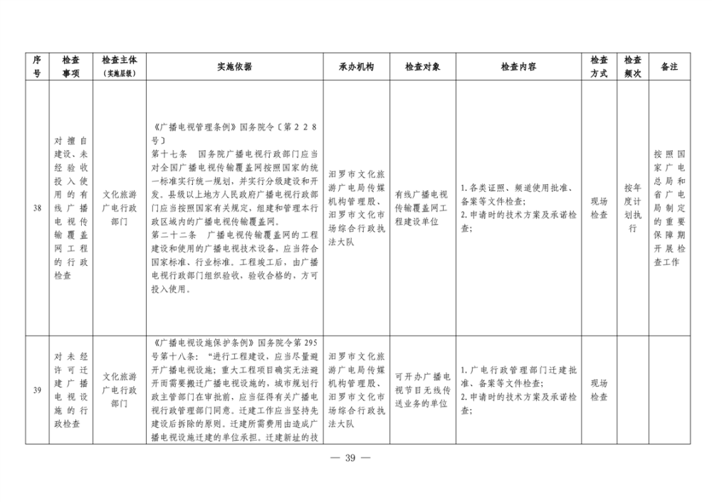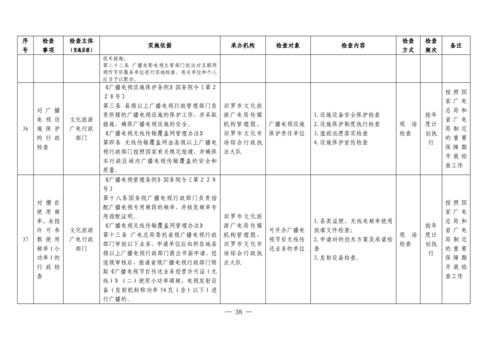 汨罗市文化旅游广电局涉企行政检查事项清单