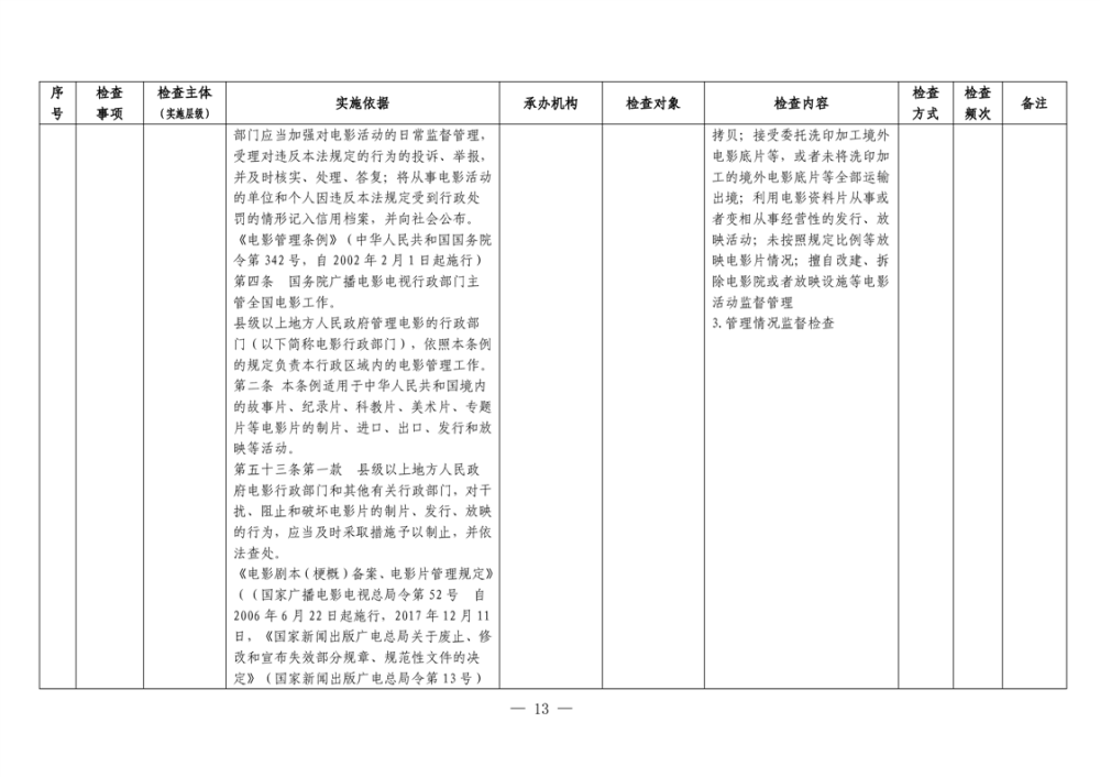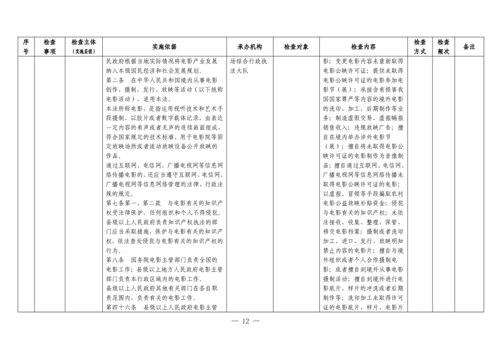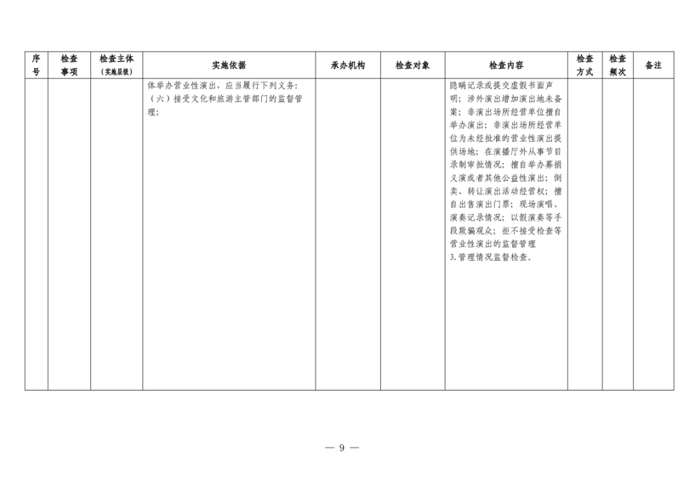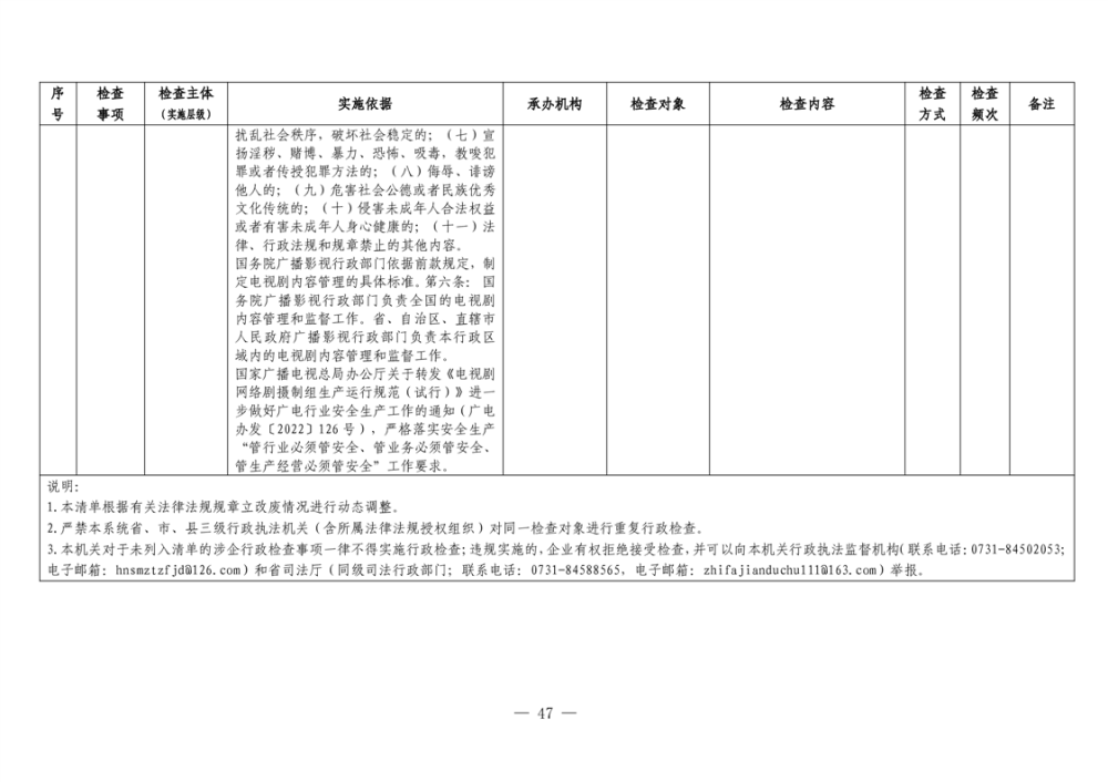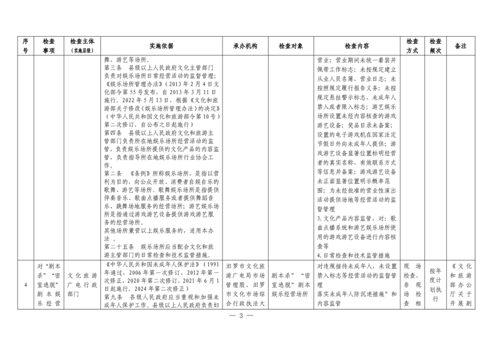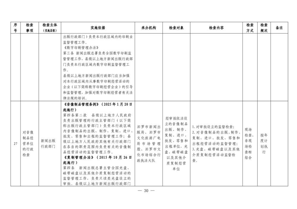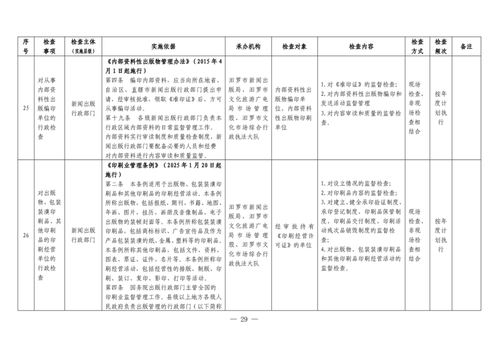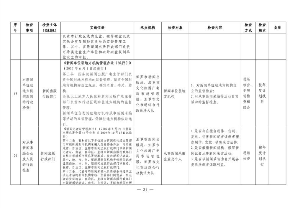 汨罗市文化旅游广电局涉企行政检查事项清单