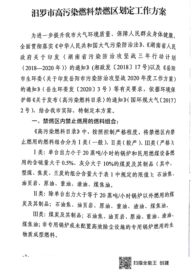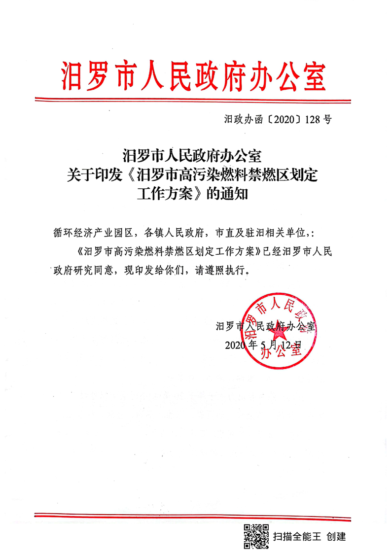 汨罗市人民政府办公室关于印发《汨罗市高污染燃料禁燃区划定工作方案》的通知