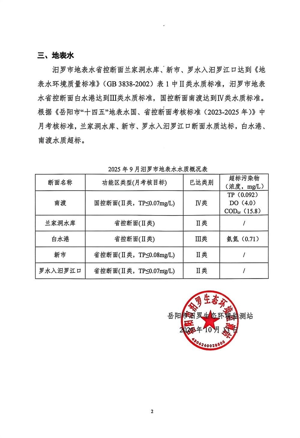 汨罗市环境质量月报(2025年9月份)