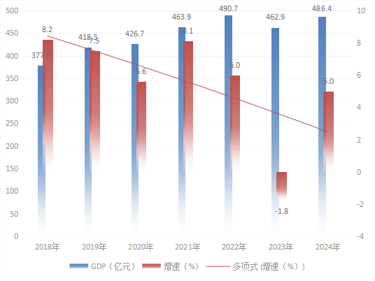 初步核算,全市完成地区生产总值486.4亿元,比上年增长5.0%。其中第一产业增加值51.8亿元,增长3.1%;第二产业增加值174.9亿元,增长4.5%;第三产业增加值259.8亿元,增长6.2%。三次产业结构比为10.6:35.9:53.4。第一、二、三产业对经济增长的贡献率分别为8.3%、33.7%和58.0%,其中工业对经济增长的贡献率为24.0%。按常住人口计算,人均GDP达到88137.0元。