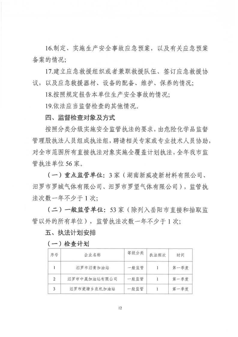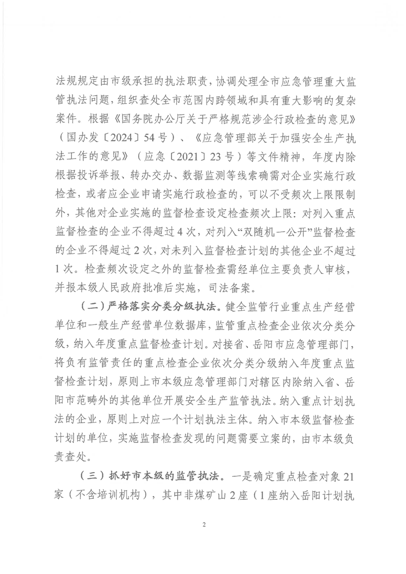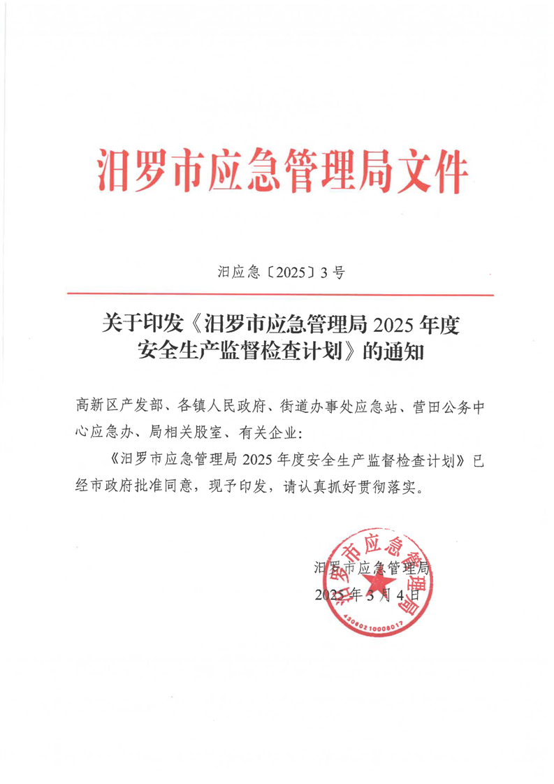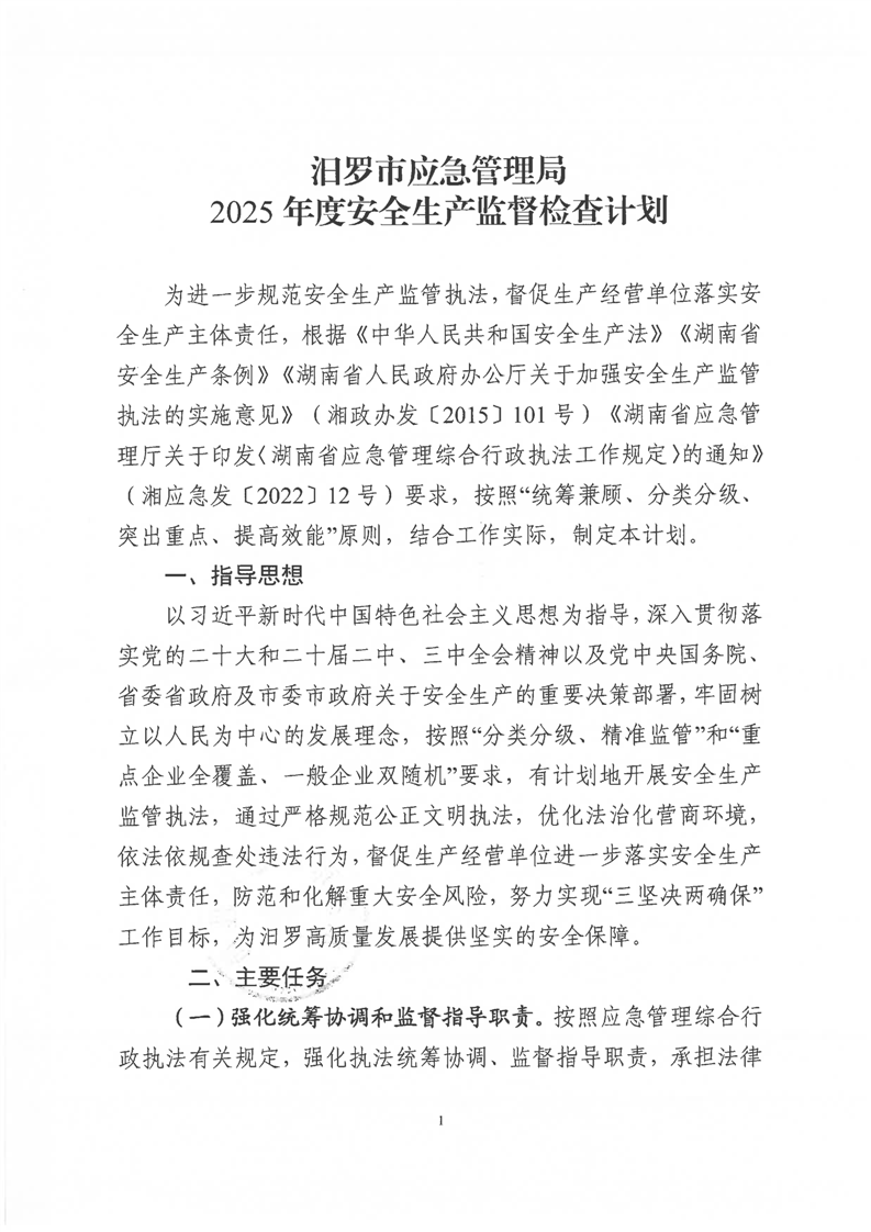 汨罗市应急管理局2025年度安全生产监督检查计划