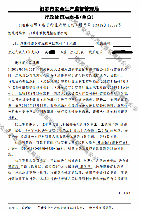 行政处罚决定书(当事人:汨罗市君悦鞋楦有限公司)