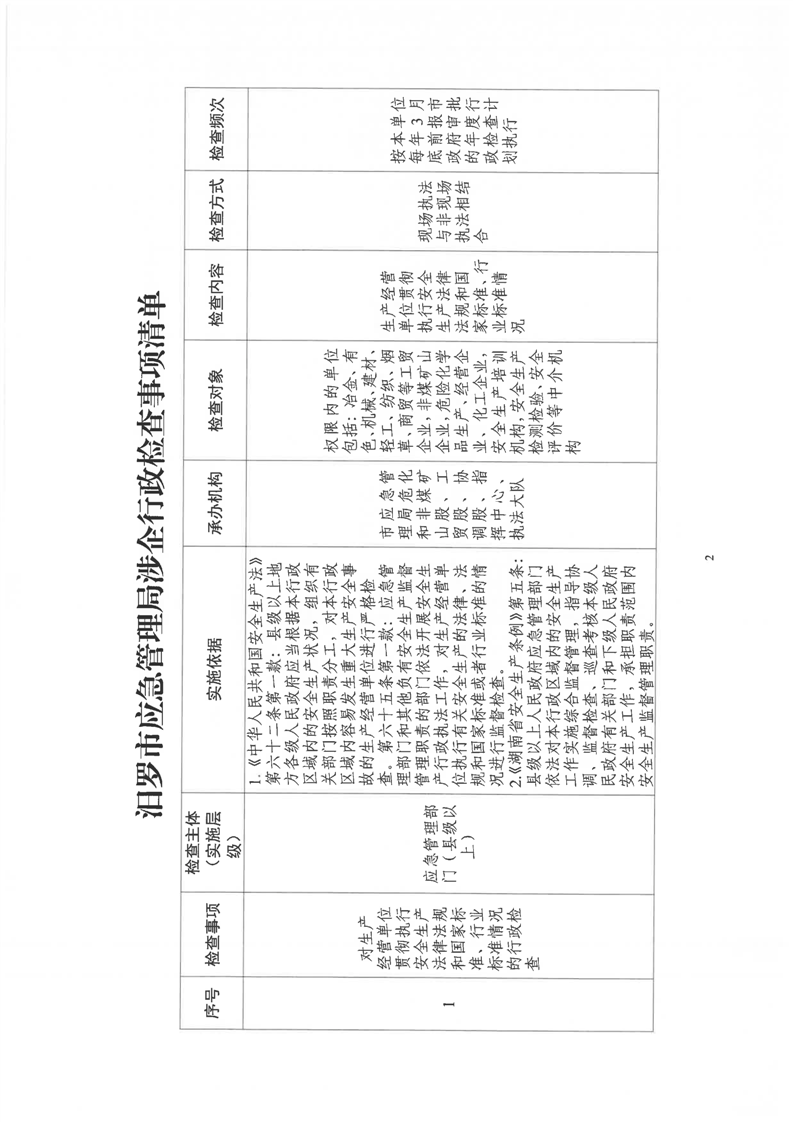 关于印发汨罗市应急管理局涉企行政检查清单的通知