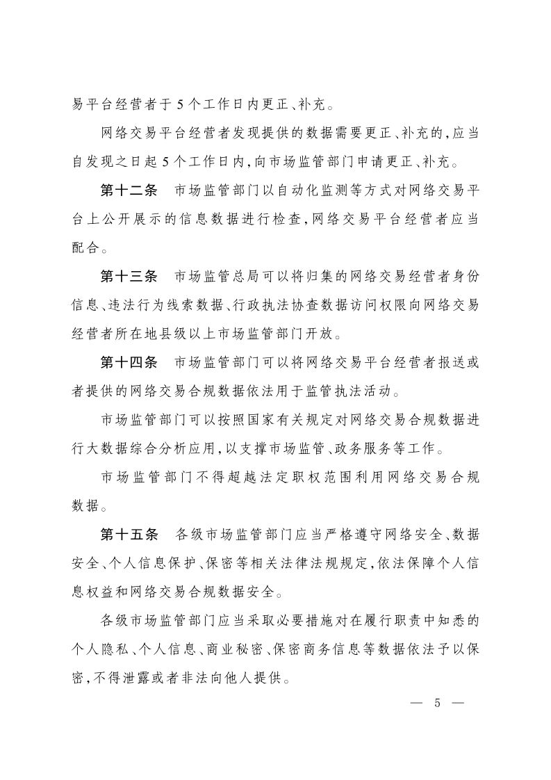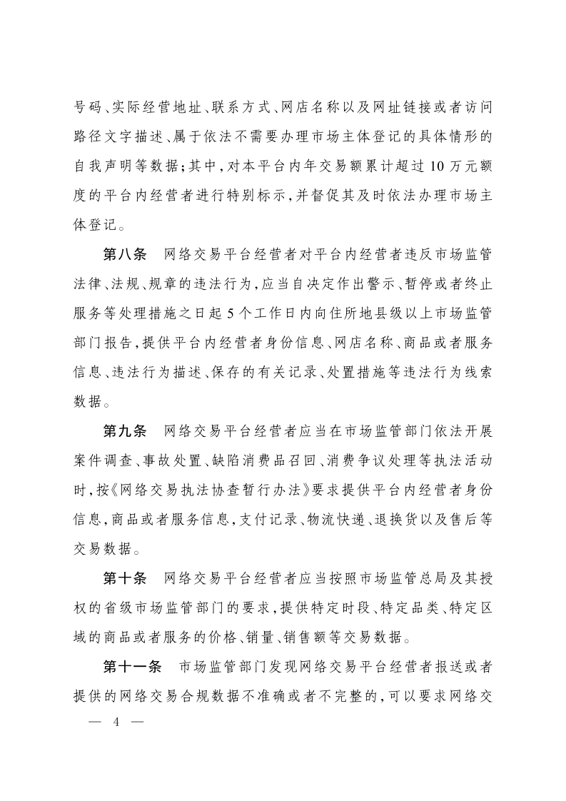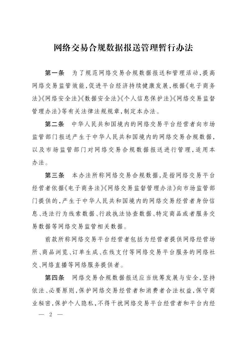 市场监管总局关于印发《网络交易合规数据报送管理暂行办法》的通知