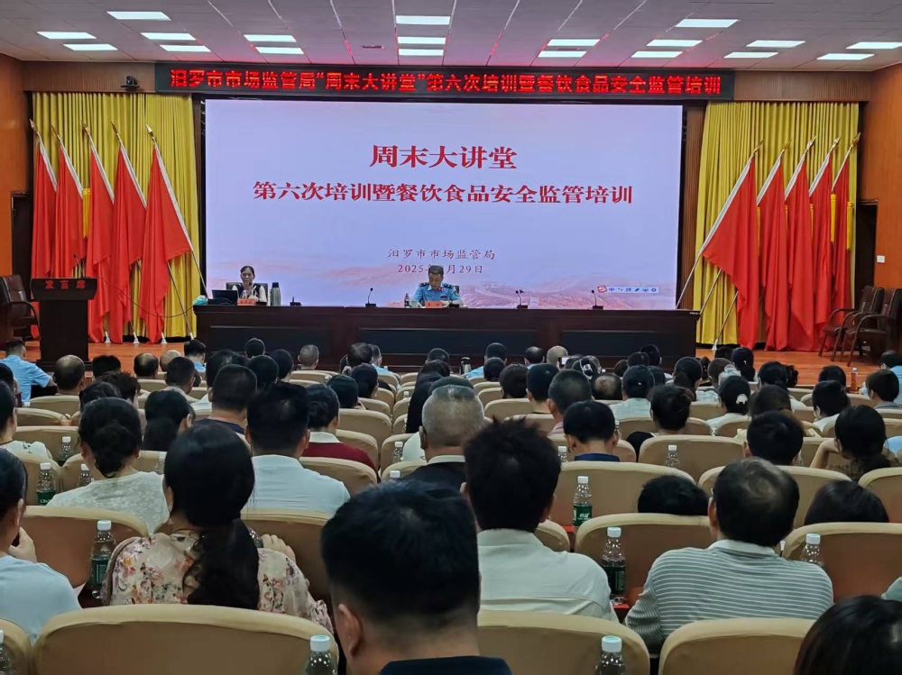 8月29日下午,汨罗市市场监督管理局第六期“周末大讲堂”在市委党校开讲。 本次培训聚焦食品安全监管主题,吸引了全市市场监管人员、学校及餐饮企业负责人等260余人参加。