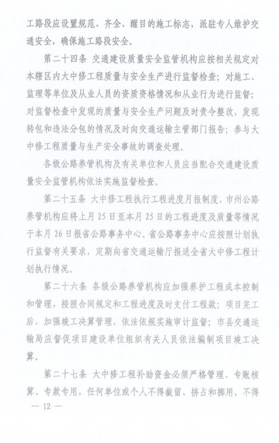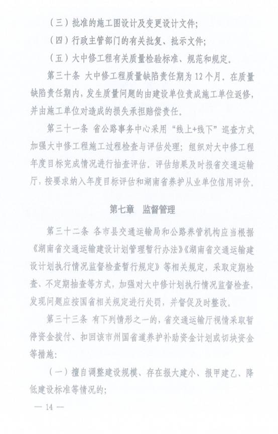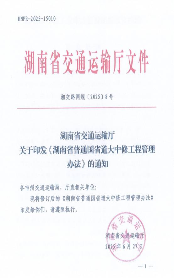 关于印发《湖南省普通国省道大中修工程管理办法》的通知