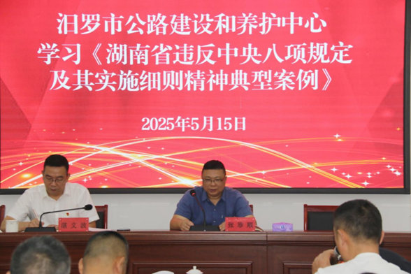 5月15日,汨罗市公路建设和养护中心围绕深入贯彻中央八项规定精神开展系列学习教育活动,推动全面从严治党向纵深发展,通过辅导讲座、交流分享、案例剖析等形式,进一步拧紧纪律“螺丝”,敲响作风“警钟”。