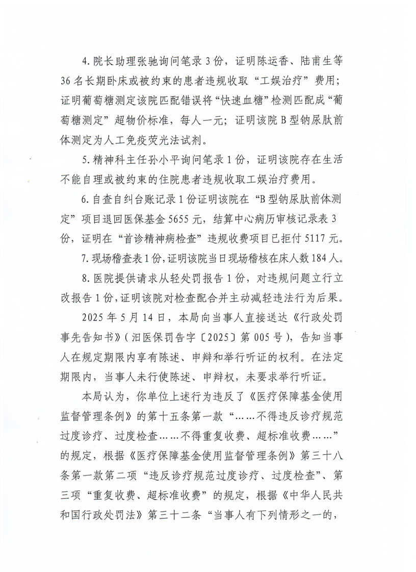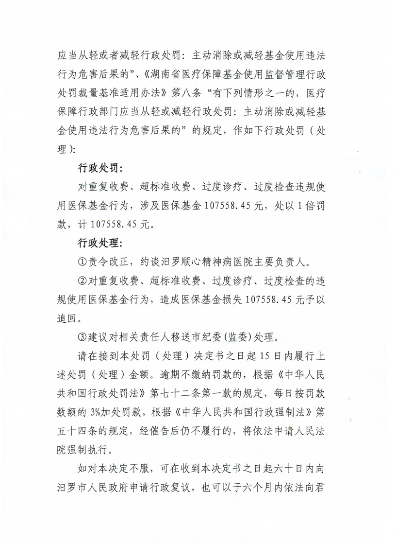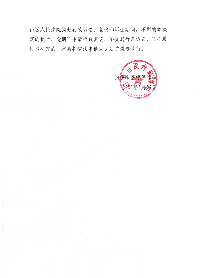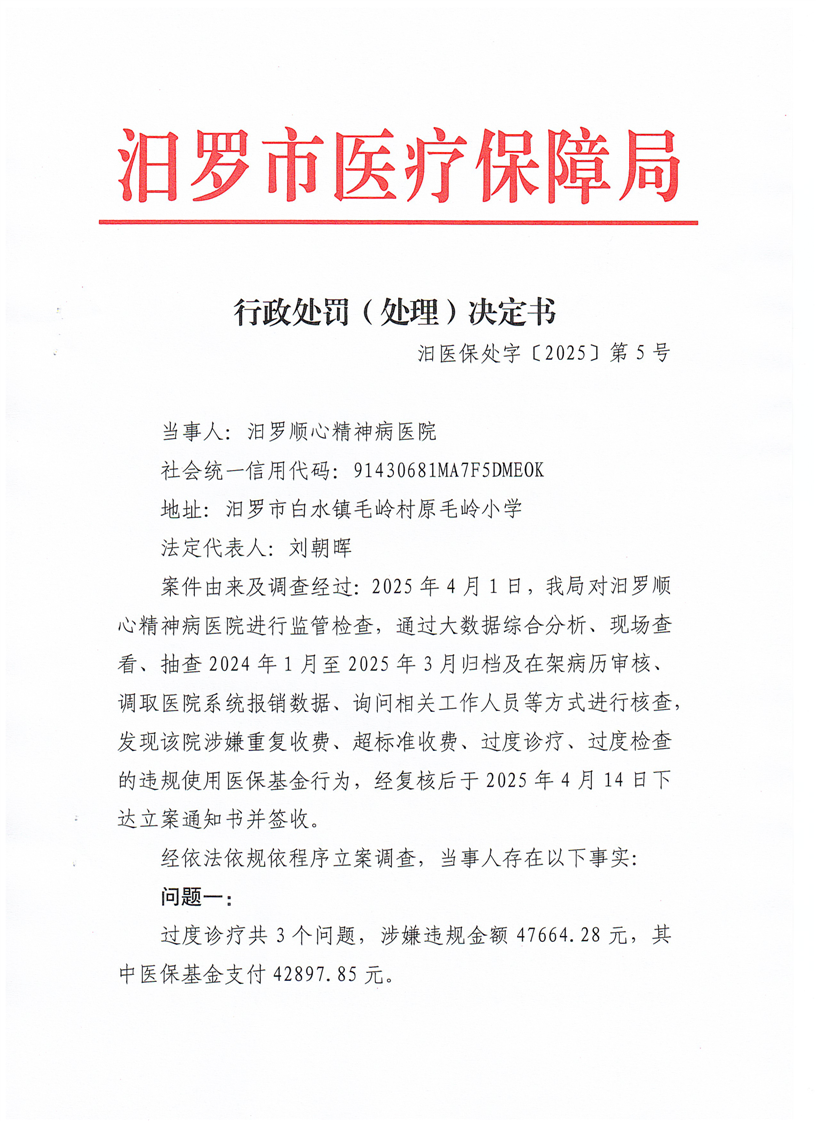 处理(处罚)决定书(汨医保处字〔2025〕第5号)