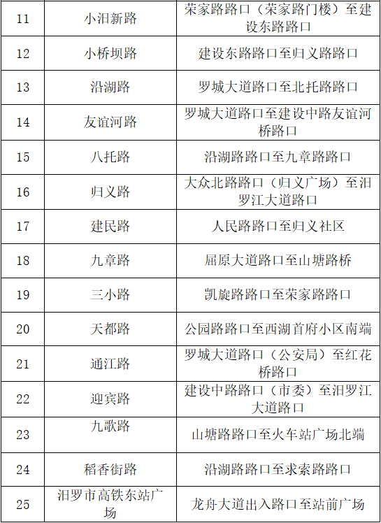 汨罗市公安局交通警察大队关于在城区内道路设置严管路段的通告