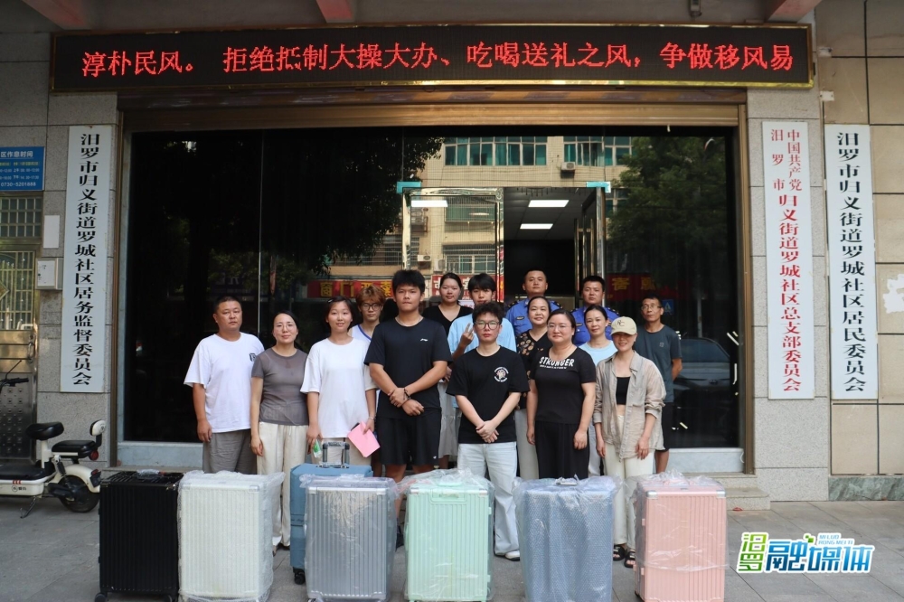 活动中,社区为每位准大学生赠送了行李箱。 准大学生代表分享了学习心得,家长代表交流了家庭教育经验。街道及社区相关负责人向准大学生们致以祝贺,叮嘱他们规划好大学生活、珍惜求学时光,并就移风易俗、拒绝铺张浪费等内容进行宣传引导,倡导大家不举办“升学宴”和“谢师宴”。