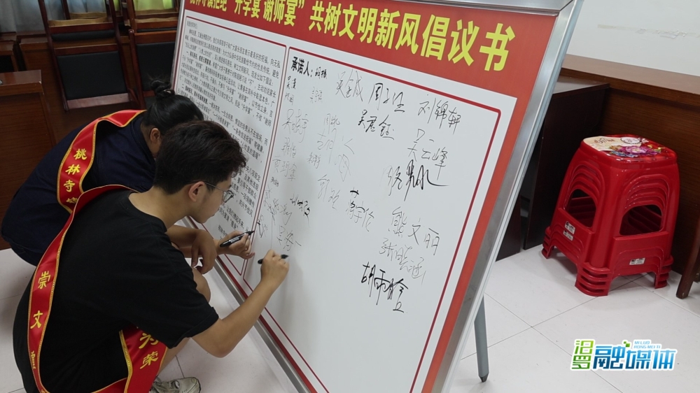 与会学子共同签署了《拒绝升学宴倡议书》,承诺摒弃大操大办,以文明新风尚庆祝升学,弘扬文明新风。镇党委书记黄光大寄语大家常怀感恩之心,永葆进取之志,将个人理想主动融入国家发展大局,锤炼本领,心系桑梓,用实绩回报家乡。