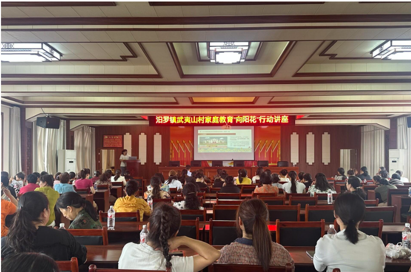 5月14日,汨罗镇武夷山村新时代文明实践站内座无虚席,一场别开生面的“向阳花”家庭教育指导服务活动正在火热进行。市妇联优秀讲师徐雁通过情景模拟、互动问答等生动形式,向90余位家长传授科学育儿方法,现场不时爆发出热烈掌声。