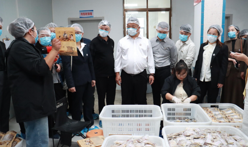 在汨罗镇湖南九碗茶韵农业开发有限公司,会员们走进产品混配、包装车间,查看晒姜、挑豆等程序,了解企业产品研发与发展成果。该企业将汨罗、湘阴一带特有的民俗茶饮姜盐芝麻豆子茶产业化,依托 “非遗 + 电商” 模式,月销售订单超过3 万单,带动本地就业30人。
