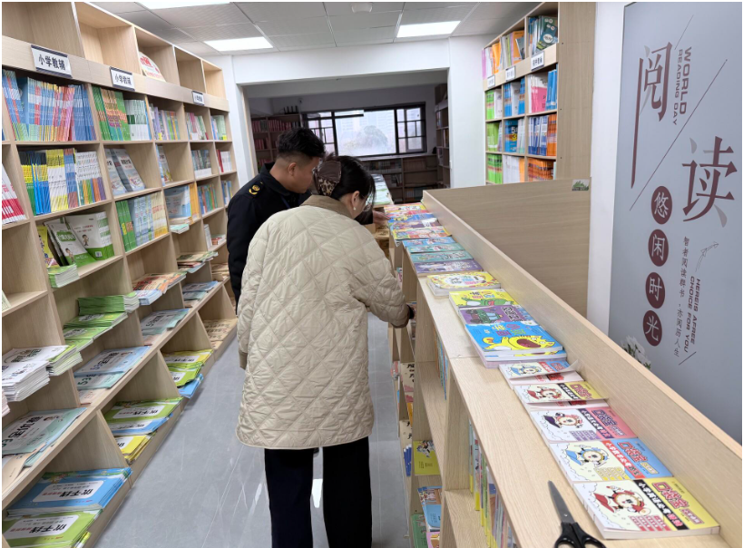 执法人员先后来到书店、打印复印店及校园周边商铺等11处重点场所,通过查阅台账、实地核验、现场询问等方式,全面检查各经营单位合规情况,重点查验出版物进货渠道是否正规、是否存在销售非法或盗版出版物等行为。同时,对各场所的消防设施、安全通道、应急设备等进行了细致检查,确保消防通道畅通、设备完好可用。