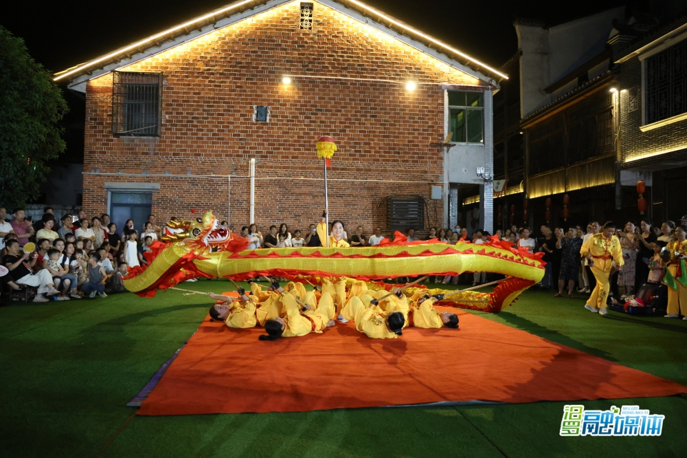 晚上7点半,长乐女子龙队舞动着黄龙从人群一侧翩然登场,带来活力四射的暖场表演。鼓点铿锵,龙身在灯光下划出灵动的弧线,“一帆风顺”“国泰民安”等造型接连呈现,既洋溢着浓郁的本土文化气息,也寄托了美好的祝福。