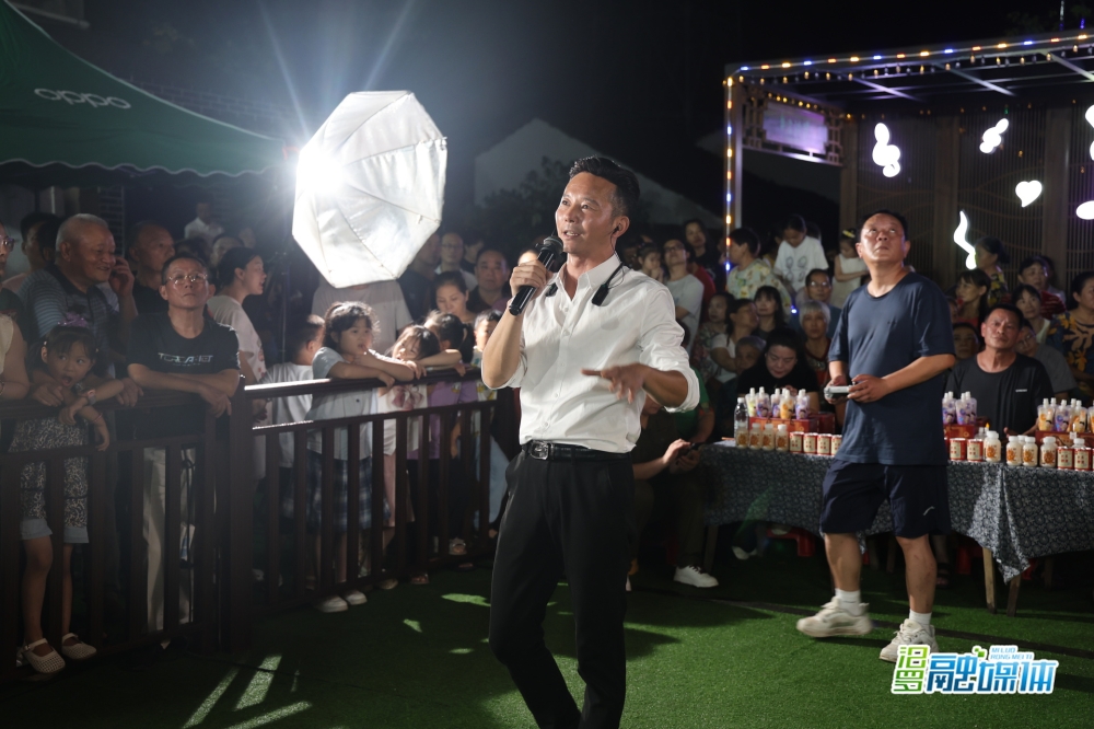 随后,曾参加汨罗江大舞台乡镇擂台赛的长乐镇战队队长艾咏担任主持人,他登台献唱多首动人歌曲,迅速点燃全场气氛。当晚演出阵容多元,不仅汇聚长乐镇的民间歌手,还特邀屈子祠镇的嘉宾助阵。活动同步进行线上直播,观众纷纷点赞留言,线上线下热烈互动。现场更设有“全民K歌”报名区,喜爱唱歌的群众可现场报名,准备好曲目后由主持人适时邀请登台,让普通群众也体验一把“歌手瘾”。