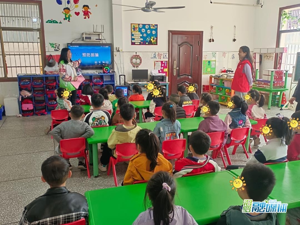 4月8日,屈子祠镇民政社工站引领志愿者走进镇幼儿园,开展“安全‘童’行 护‘幼’成长”主题教育活动,通过防拐骗、防性侵安全教育,为孩子们撑起“安全伞”。
