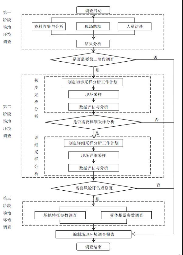 (2)规范性原则:采用程序化和标准化的方式规范建设用地土壤污染状况调查报告调查过程,按照场地调查技术导则工作程序要求开展和实施,保证场地调查过程的科学性和客观性。