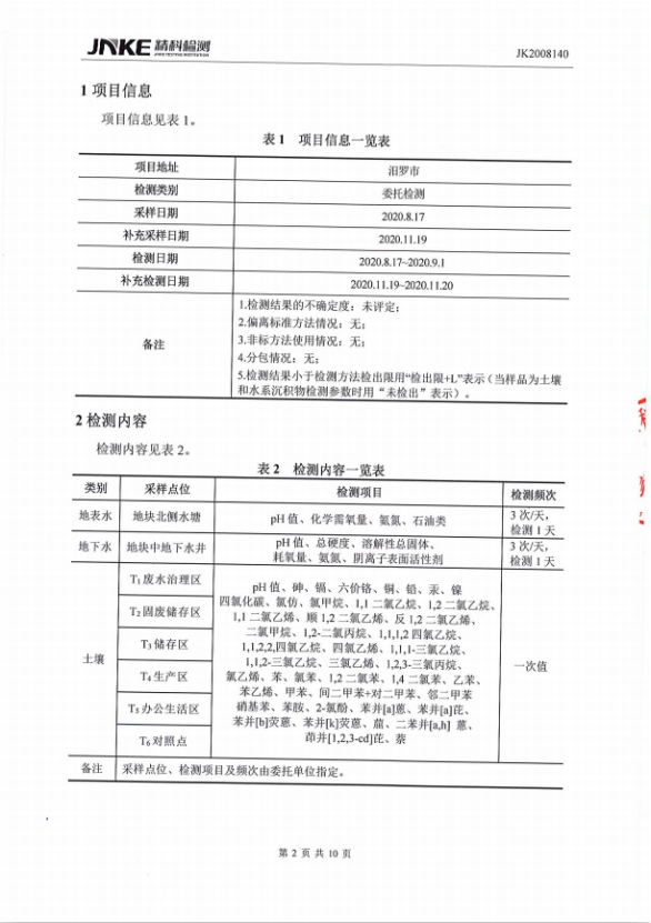 (2)由地表水检测结果可知,地块北侧水塘未出现超标现象,地块未对周边地表水产生影响。