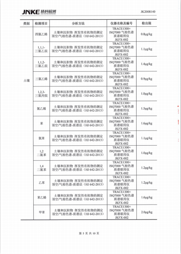 (2)由土壤检测结果可知,本项目土壤样品中,地块内建设用地的土壤未出现超标因子。