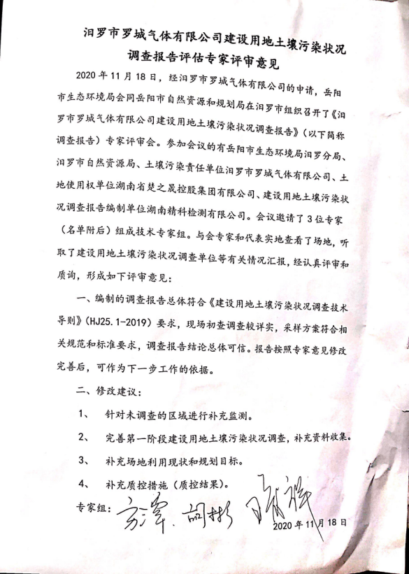 此为汨罗市罗城气体有限公司建设用地土壤污染状况调查报告。