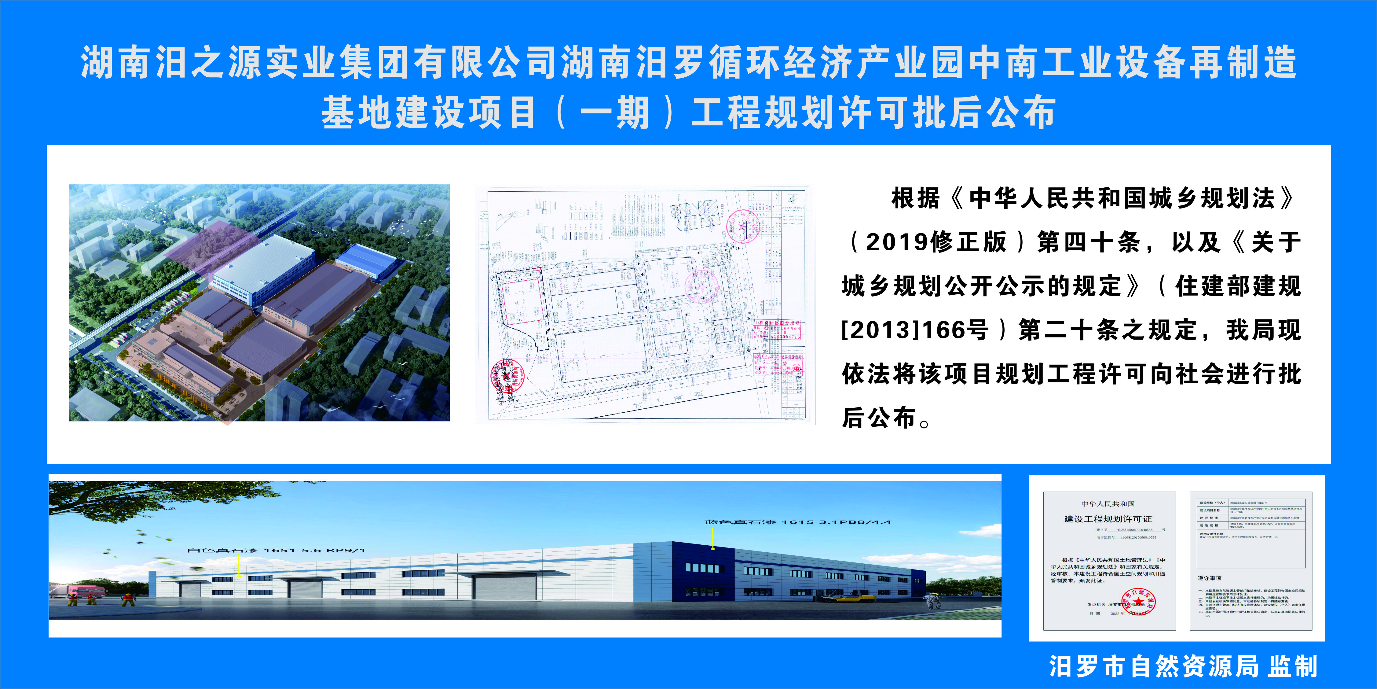 湖南汨之源实业集团有限公司湖南汨罗循环经济产业园中南工业设备再制造基地建设项目(一期)工程规划许可批后公布