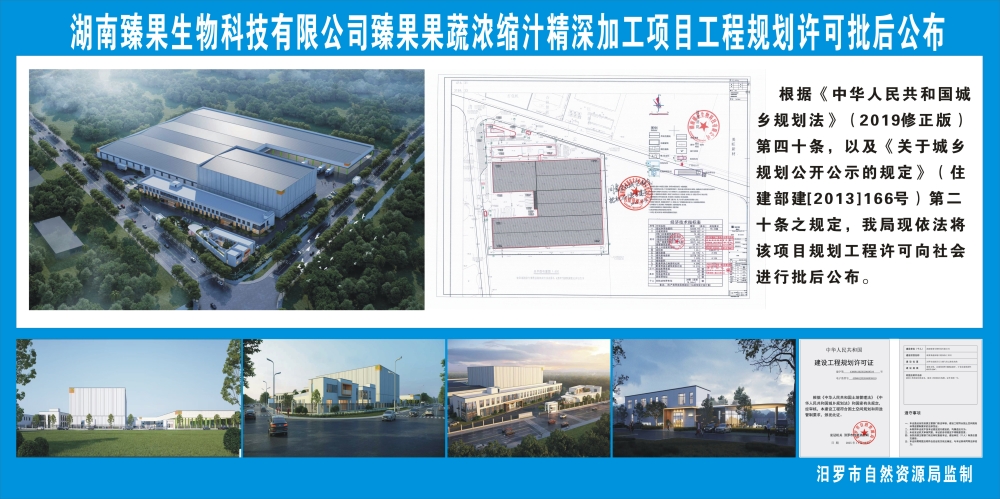 湖南臻果生物科技有限公司臻果果蔬浓缩汁精深加工项目工程规划许可批后公布