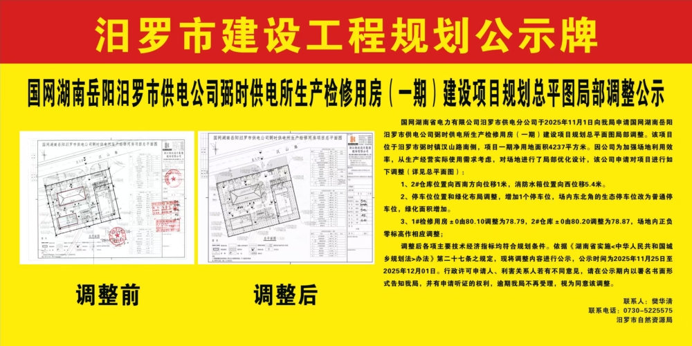 国网湖南岳阳汨罗市供电公司弼时供电所生产检修用房(一期)建设项目规划总平图局部调整公示