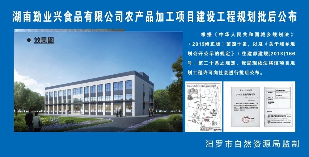 湖南勤业兴食品有限公司农产品加工项目建设工程规划批后公布