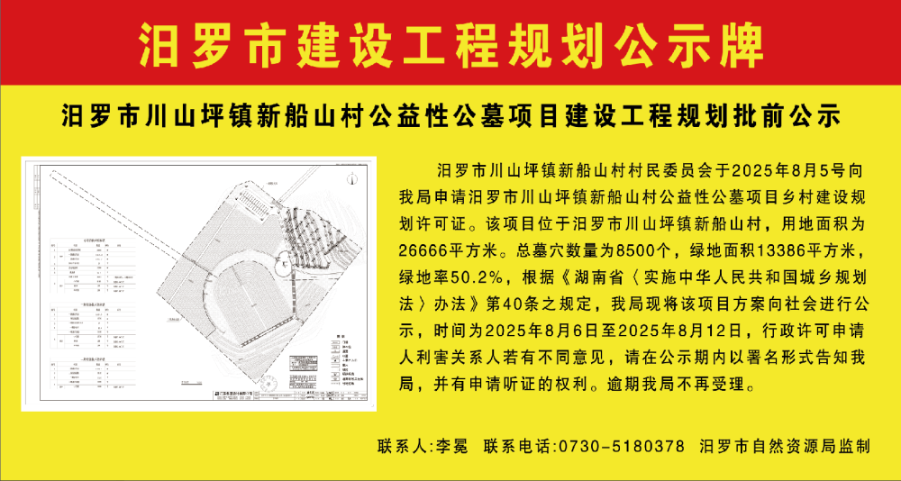 汨罗市川山坪镇新船山村公益性公墓项目建设工程规划批前公示