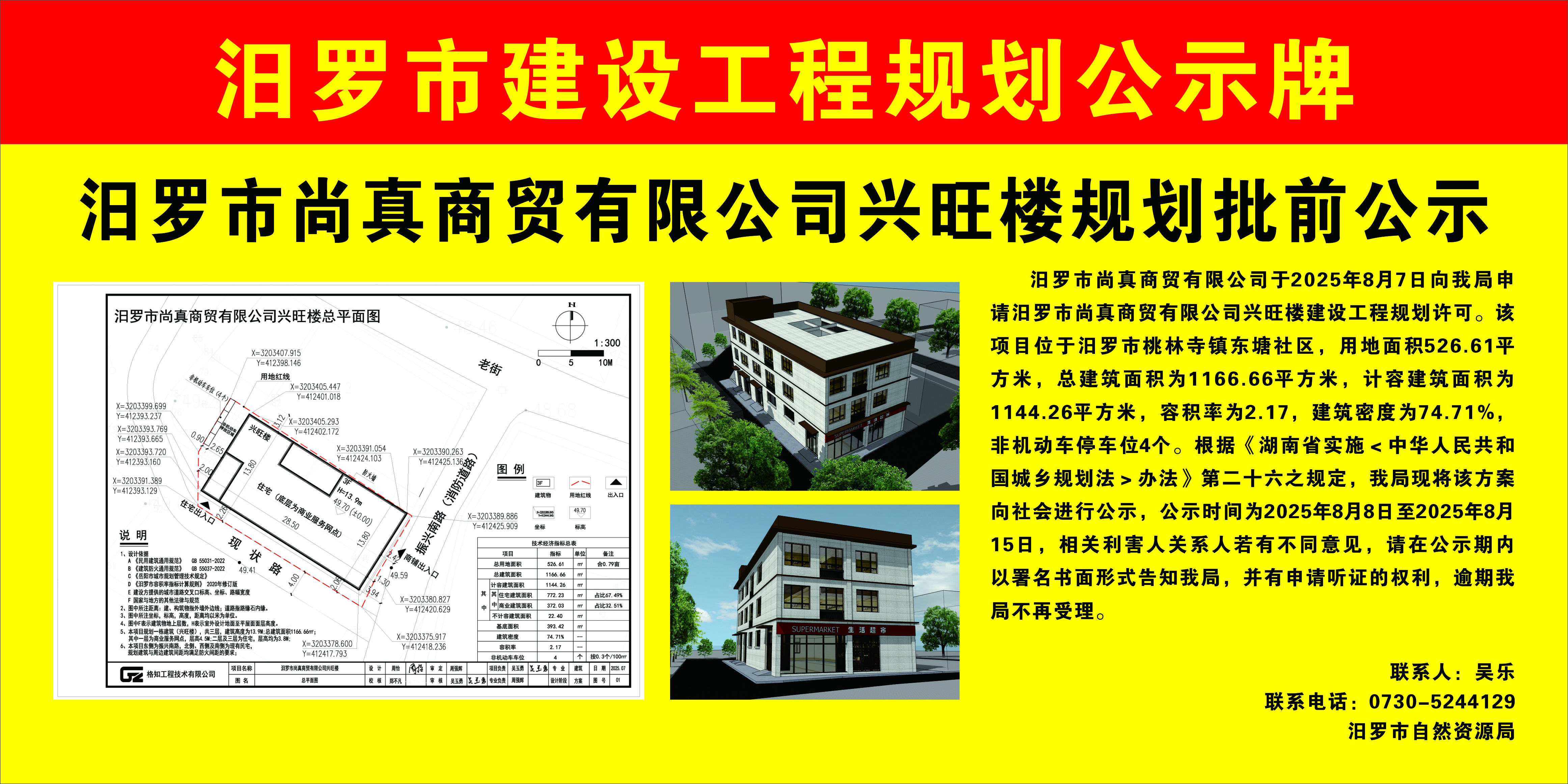 汨罗市尚真商贸有限公司兴旺楼规划批前公示