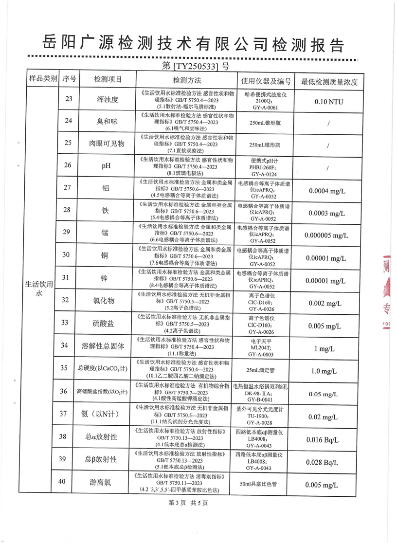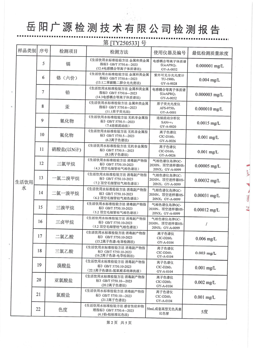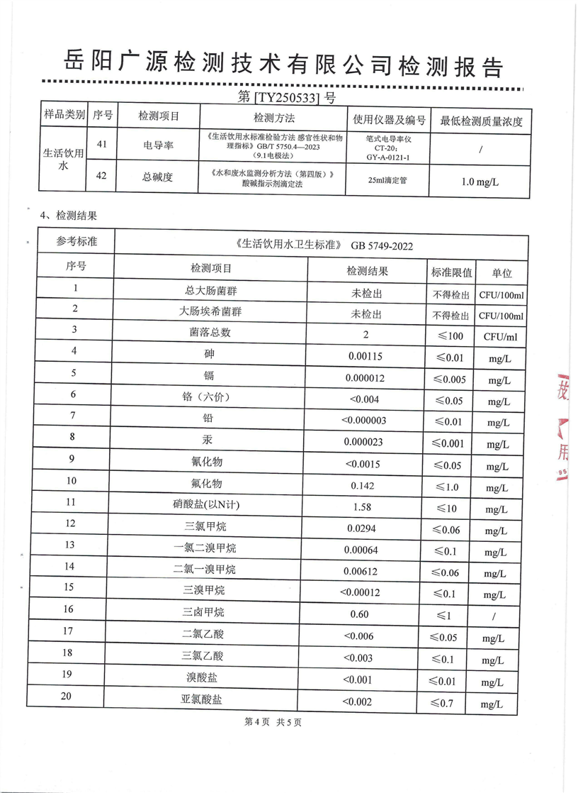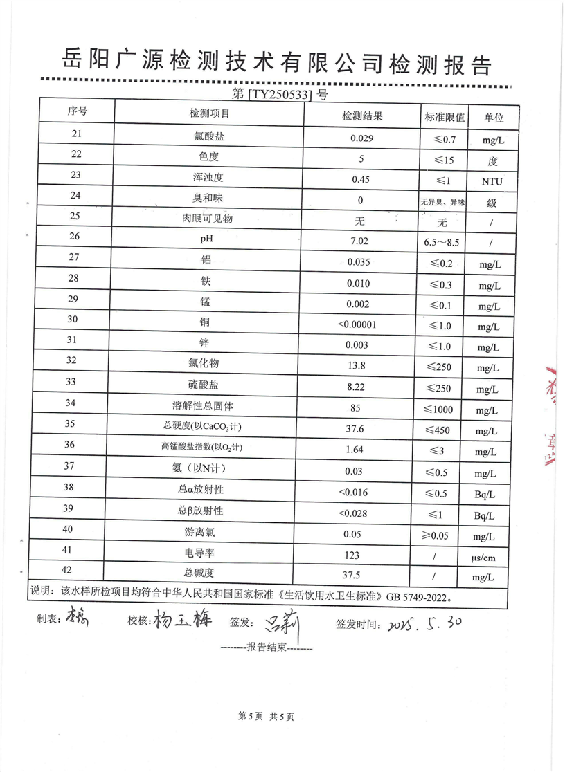 2025年5月份汨罗市自来水有限公司管网水(九喜蚊香)质检月报表