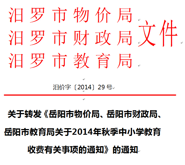 汨罗市物价局 汨罗市财政局 汨罗市教育局