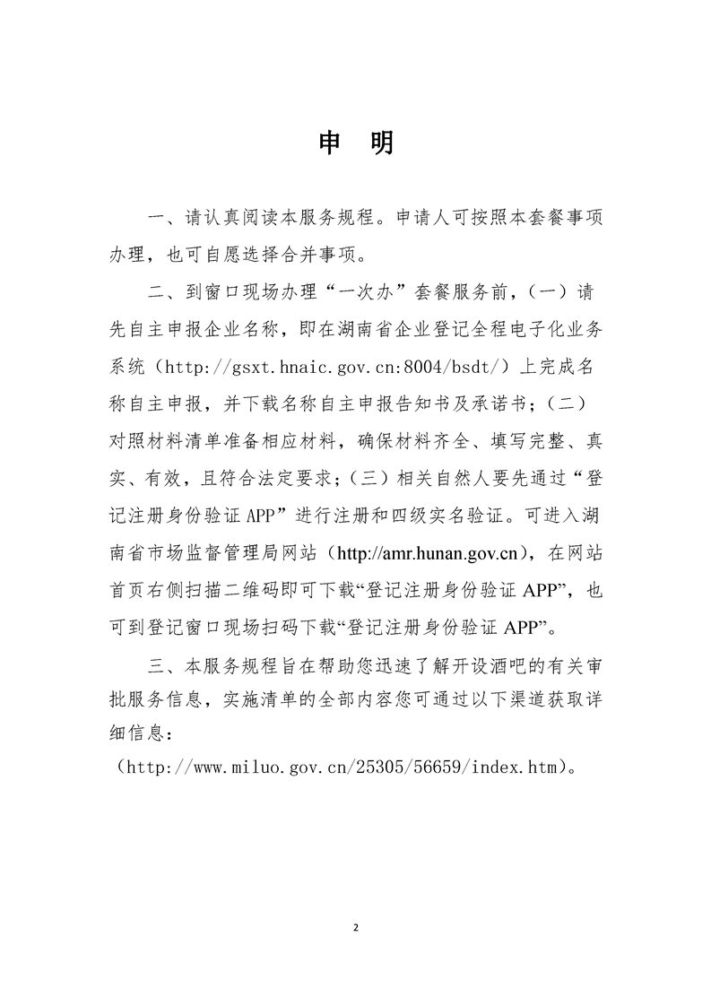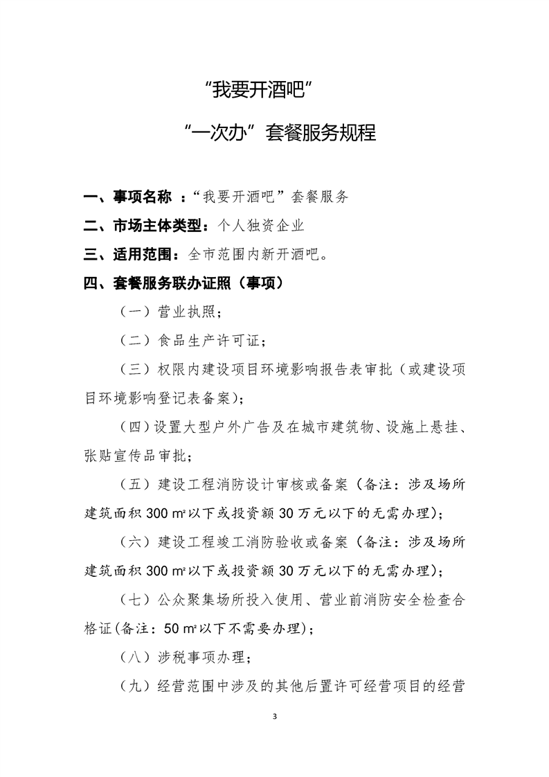 “我要开酒吧”“一件事”套餐服务规程(个人独资企业)