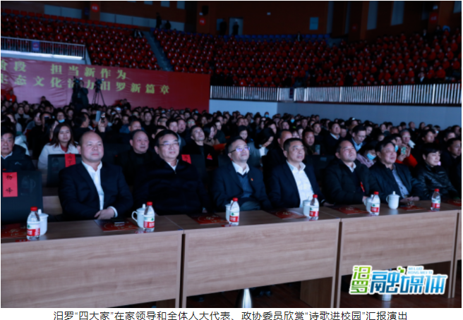 汨罗融媒体讯(记者 张为 胡清 周敏 何俊)诗意的校园,梁间瓦上尽是诗。12月23日晚,汨罗“四大家”在家领导和全体人大代表、政协委员到正则学校欣赏“诗歌进校园”汇报演出。
