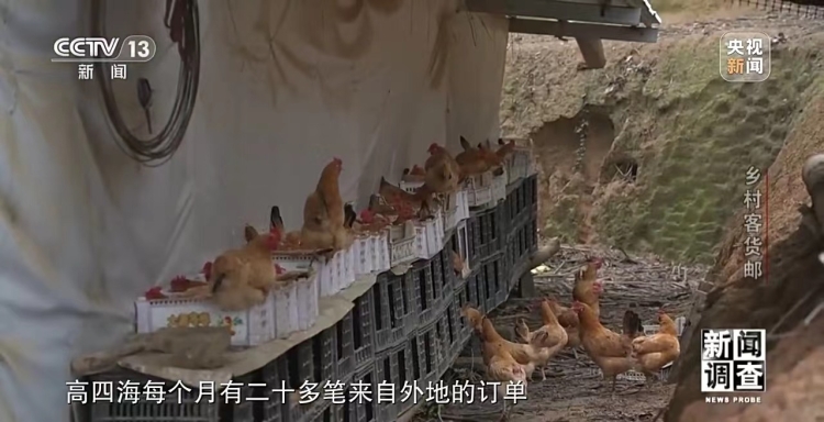 2020年,在外务工的高四海回到家乡,创办养鸡场,通过在微信朋友圈进行宣传,高四海每个月有二十多笔来自外地的订单。他介绍,现在的养鸡场有8000多只鸡,平均每天产蛋1800枚,基本上都是本地销售,虽然知道线上市场更广阔,但自己却是看得见,够不着。