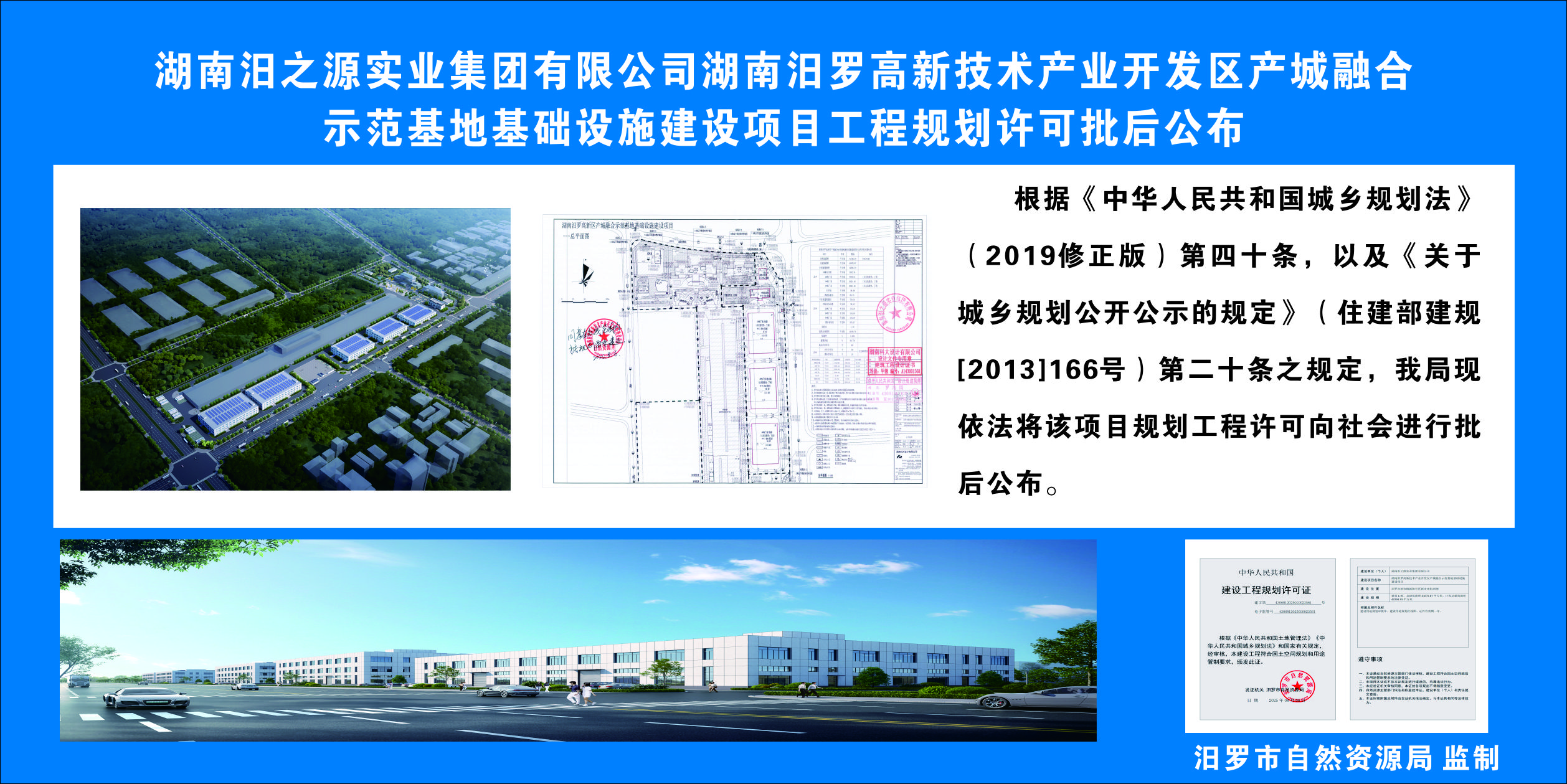 湖南汨之源实业集团有限公司湖南汨罗高新技术产业开发区产城融合示范基地基础设施建设项目工程规划许可批后公布