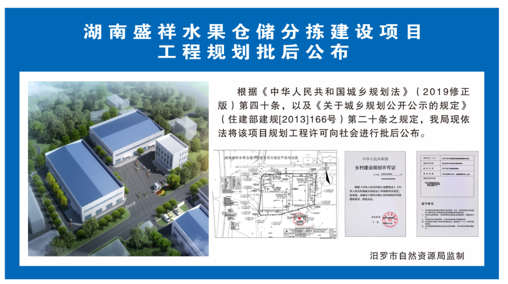 湖南盛祥水果仓储分拣建设项目工程规划批后公布