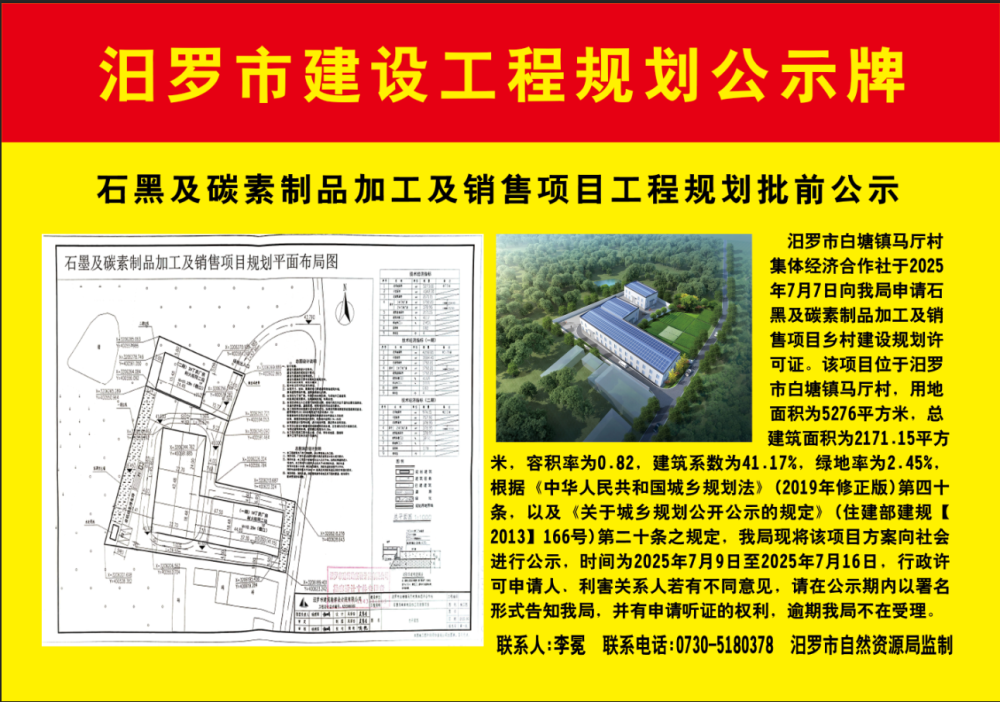 石黑及碳素制品加工及销售项目工程规划批前公示