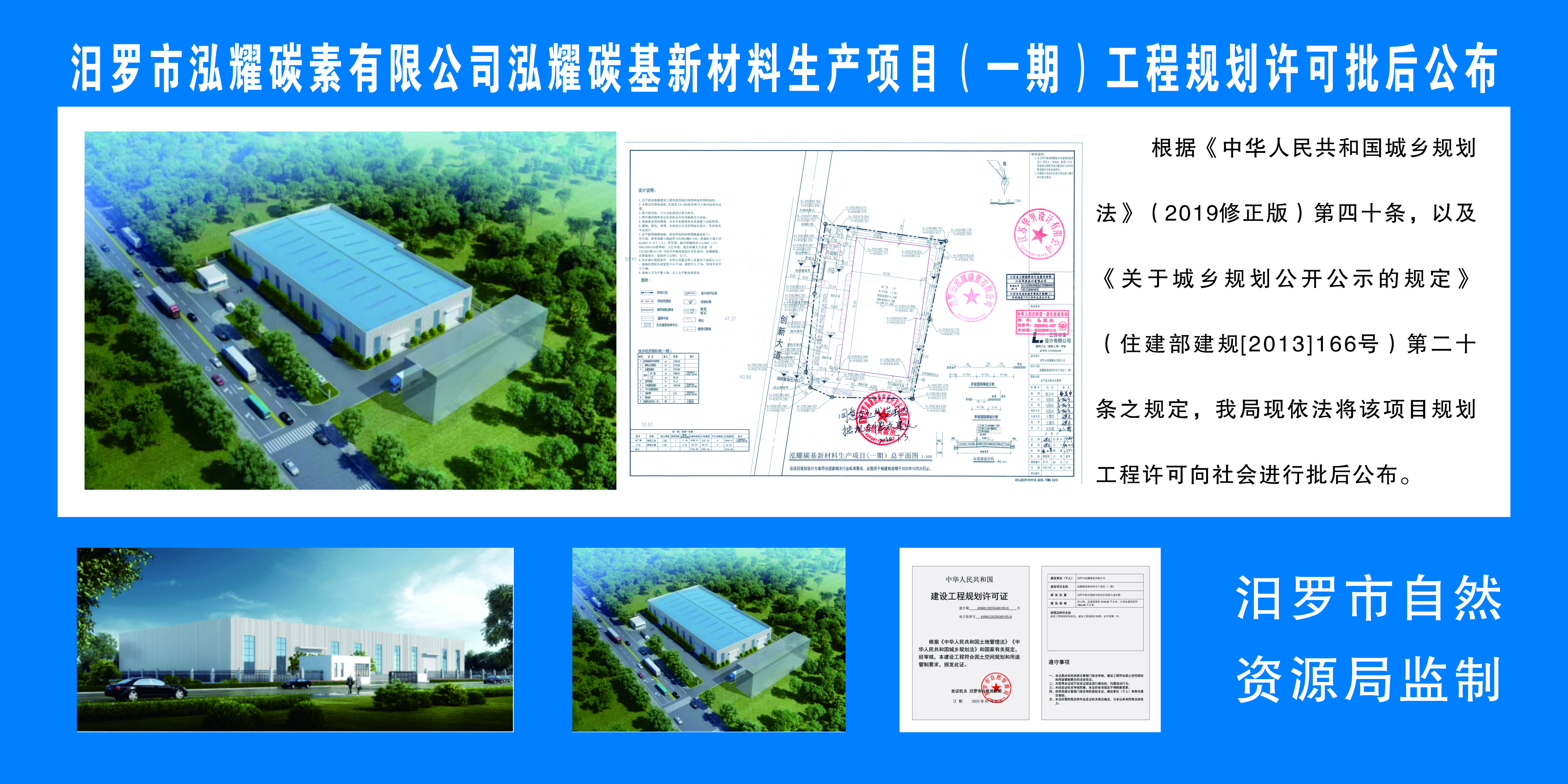 汨罗市泓耀碳素有限公司泓耀碳基新材料生产项目(一期)工程规划许可批后公布