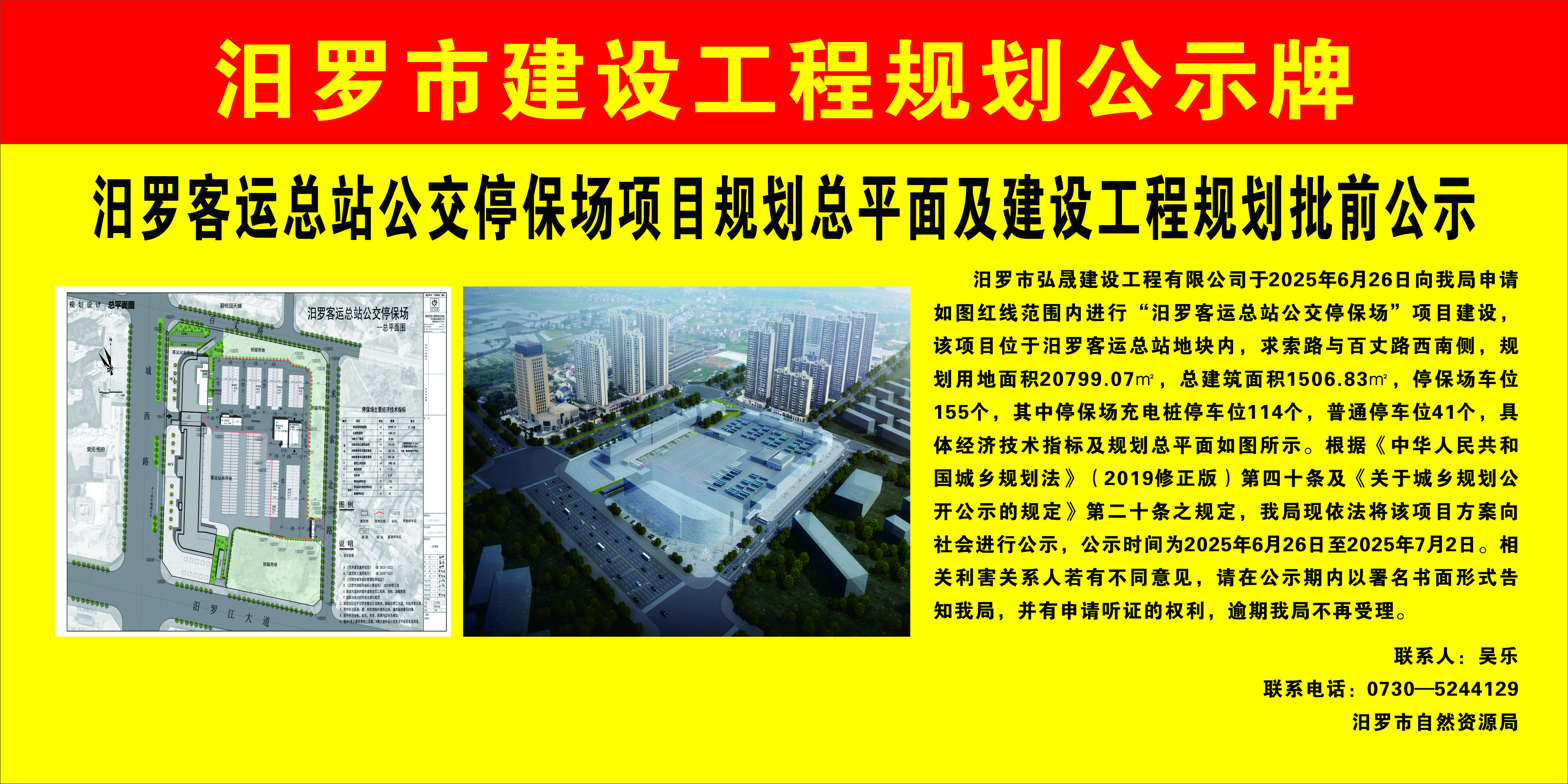 汨罗客运总站公交停保场项目规划总平面及建设工程规划批前公示