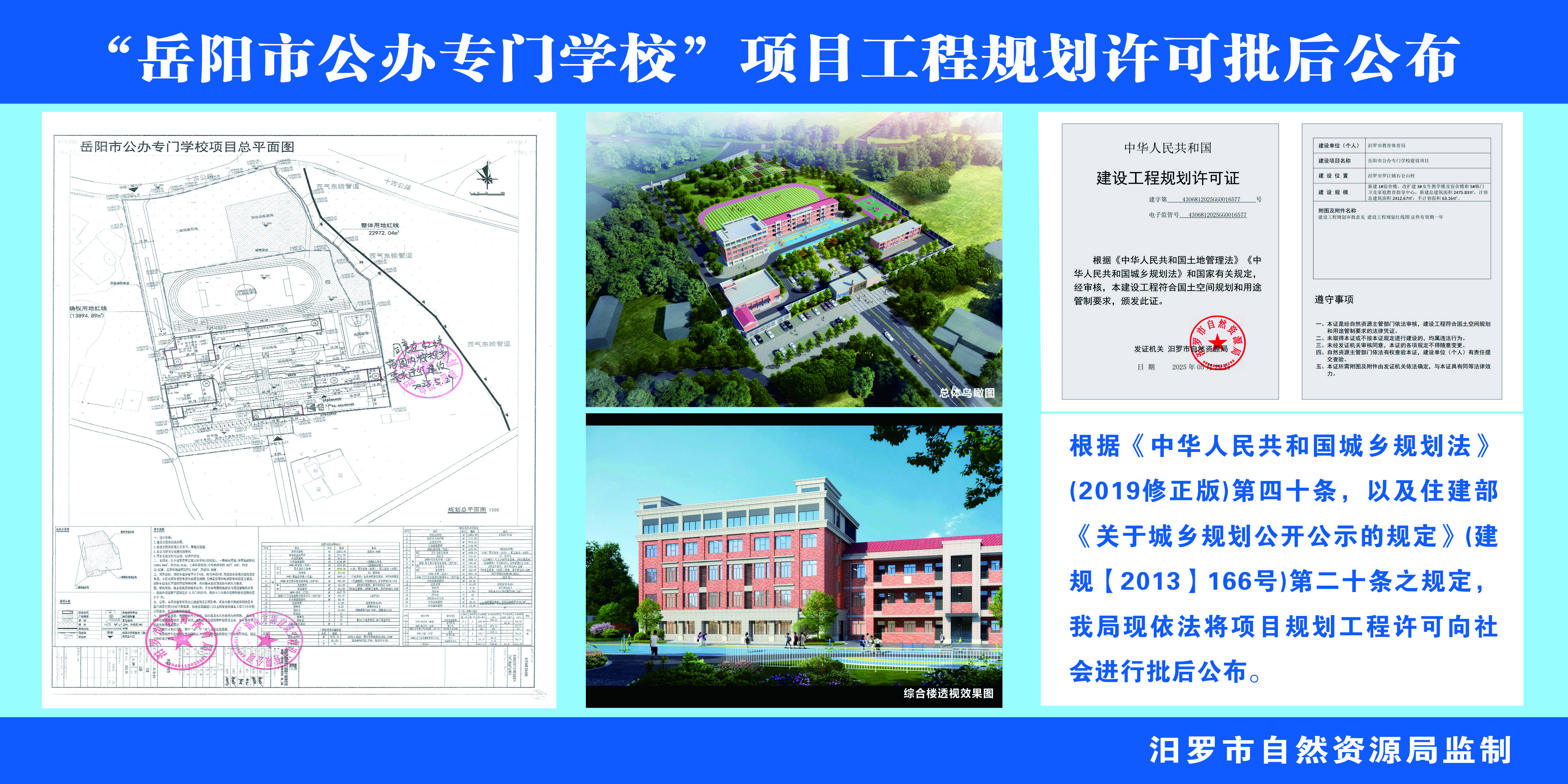 “岳阳市公办专门学校”项日工程规划许可批后公布