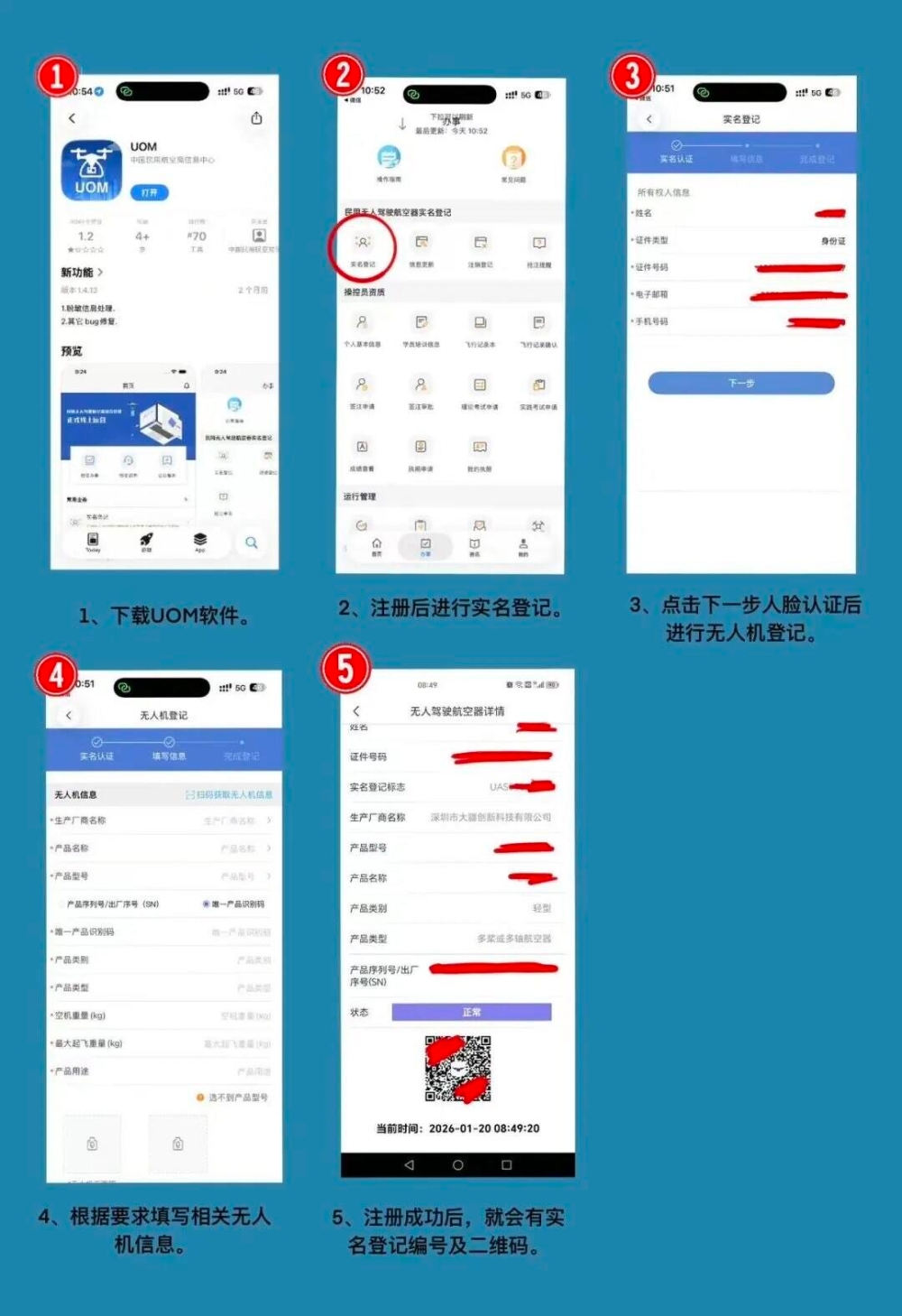 为确保安全、合法飞行,请所有无人机持有者(军用除外)尽快完成以下“三步走”登记备案流程: