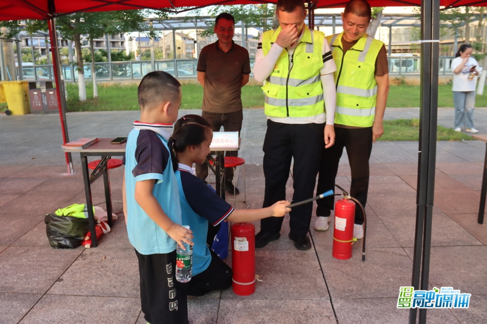 在汨罗市公路建设和养护中心咨询台前,家住附近的五年级学生徐同学在母亲陪同下,带着弟弟专注聆听工作人员讲解灭火器的使用方法。“先拔掉保险销,握住喷管,站在上风方向对准火焰根部喷射……”工作人员一边进行演示,一边细致讲解,现场学习氛围浓厚。