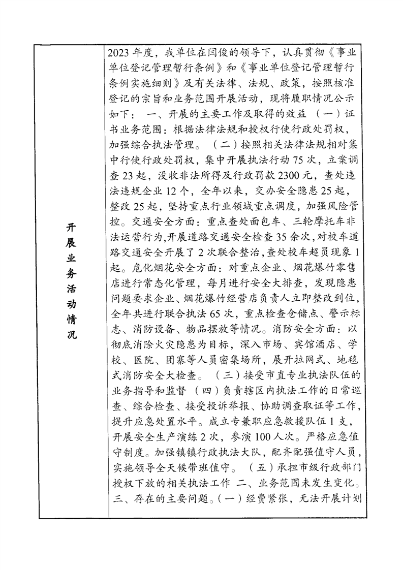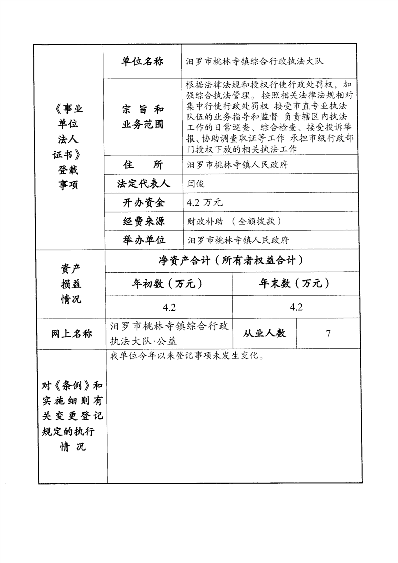 汨罗市桃林寺镇行政综合执法大队法人年度报告书