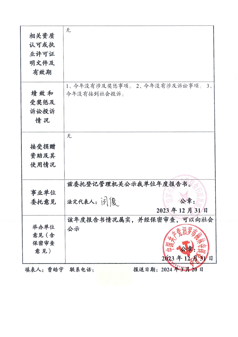 事业单位2023年度报告公示